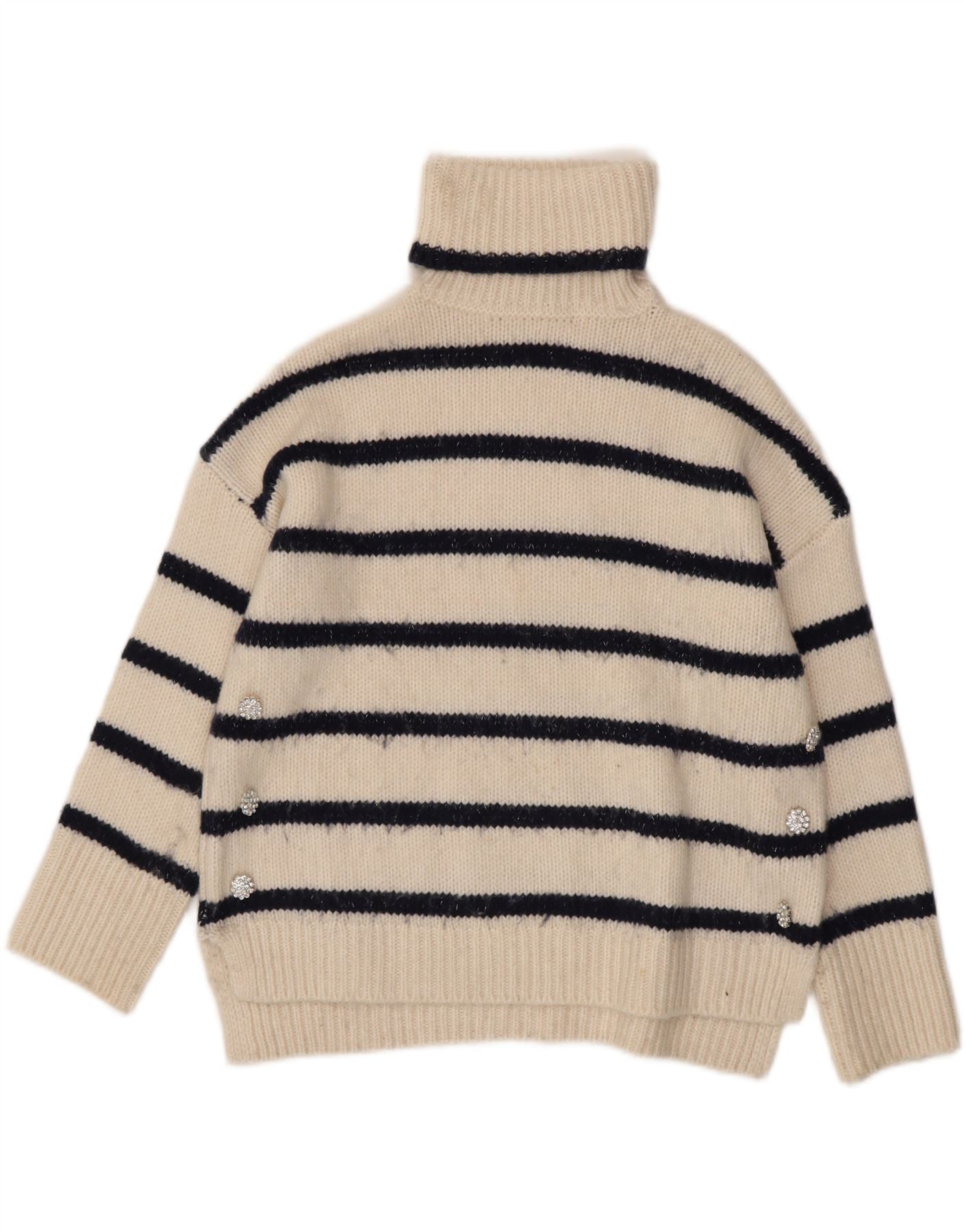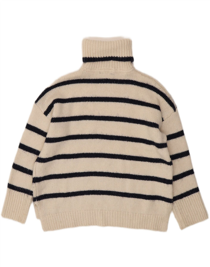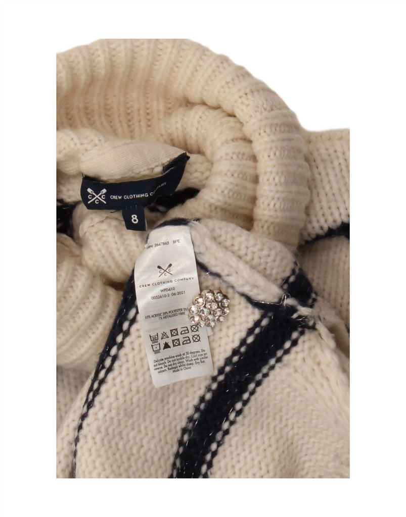 CREW CLOTHING Womens Roll Neck Jumper Sweater UK 8 Small Off White Striped