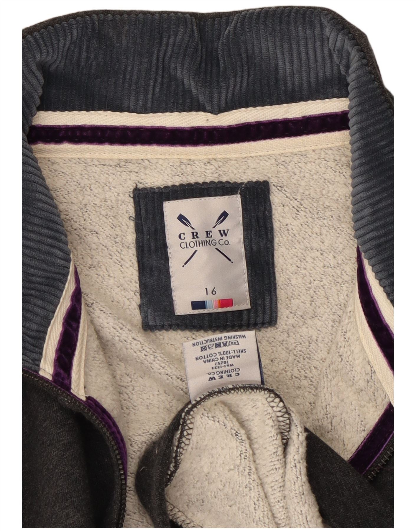 CREW CLOTHING Womens Tracksuit Top Jacket UK 16 Large Grey Cotton