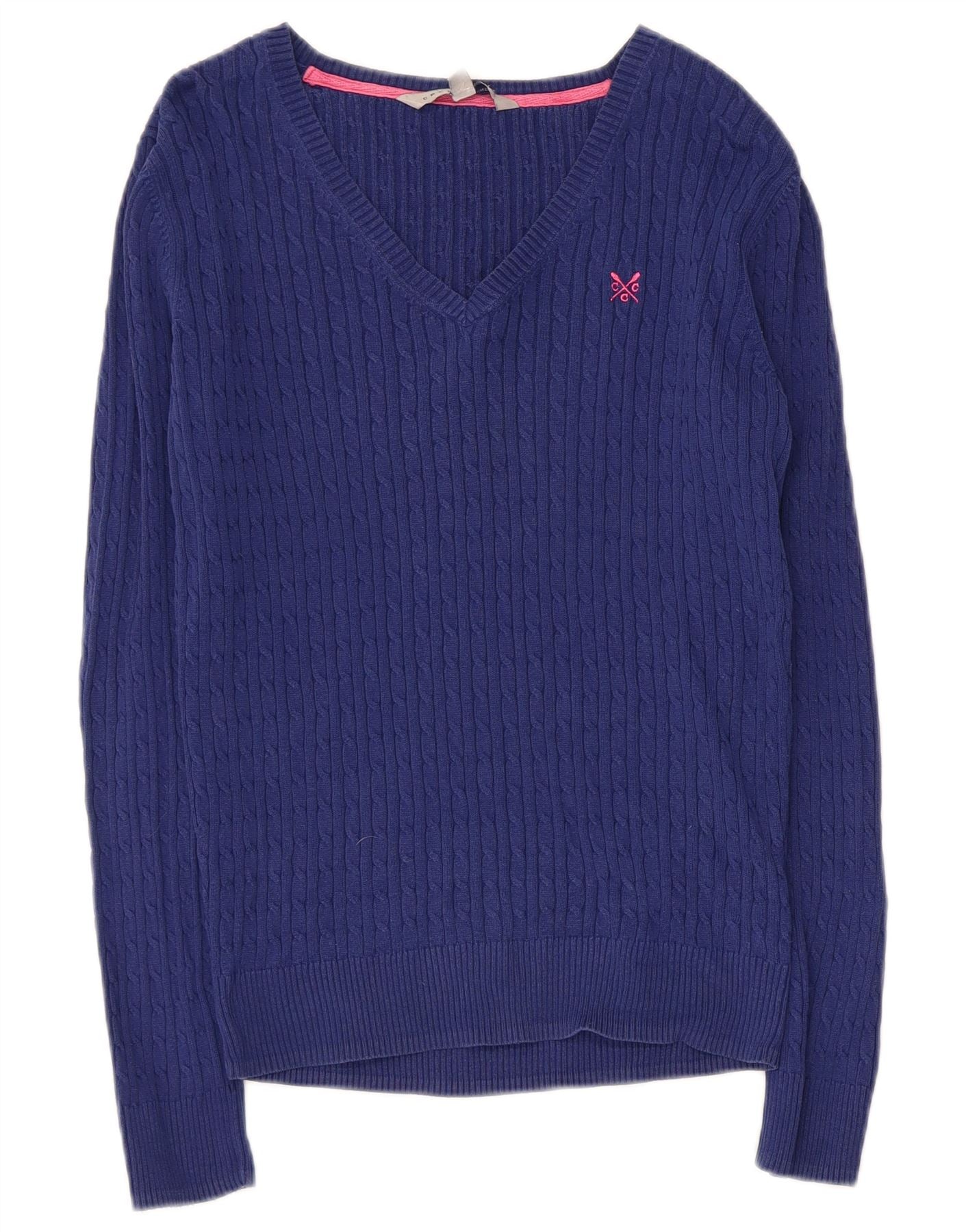 CREW CLOTHING Pulover cu decolteu în V pentru femei UK 12 Bumbac albastru mediu