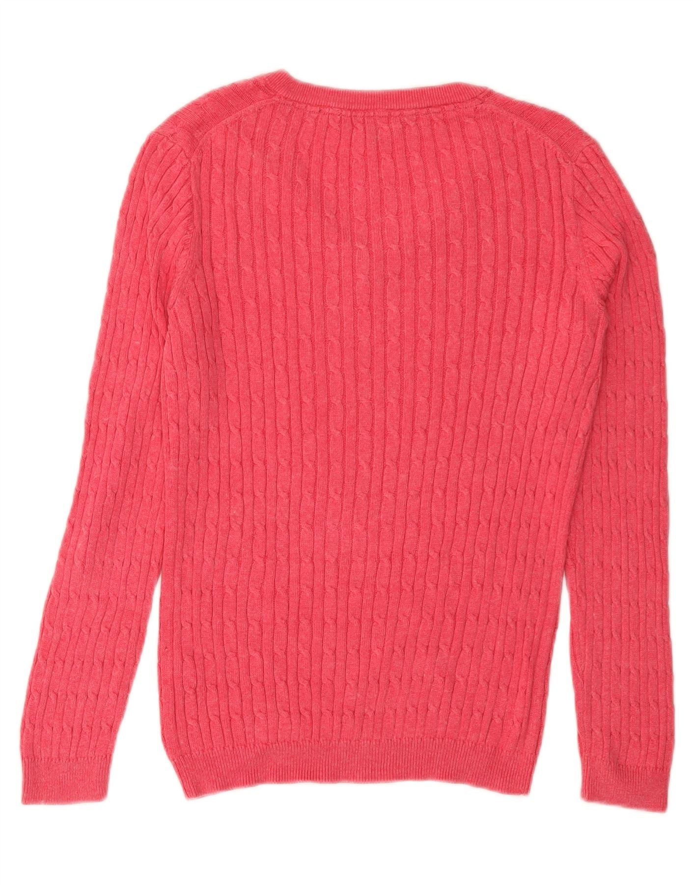 CREW CLOTHING Womens V-Neck Jumper Sweater UK 12 Medium Pink Cotton