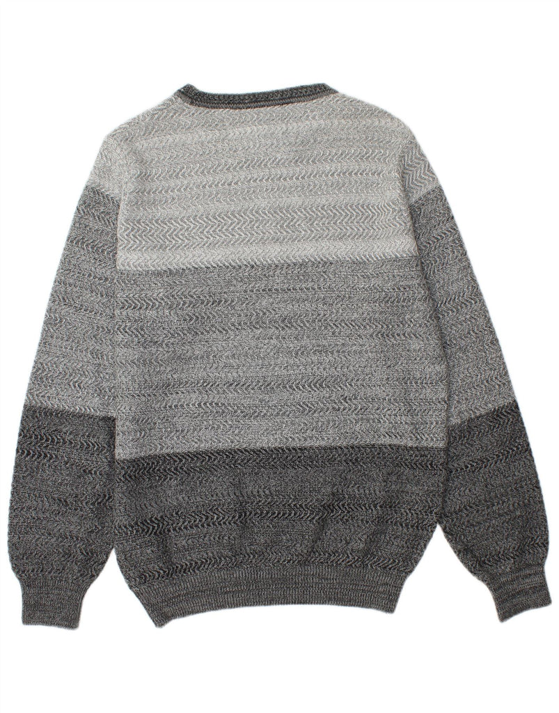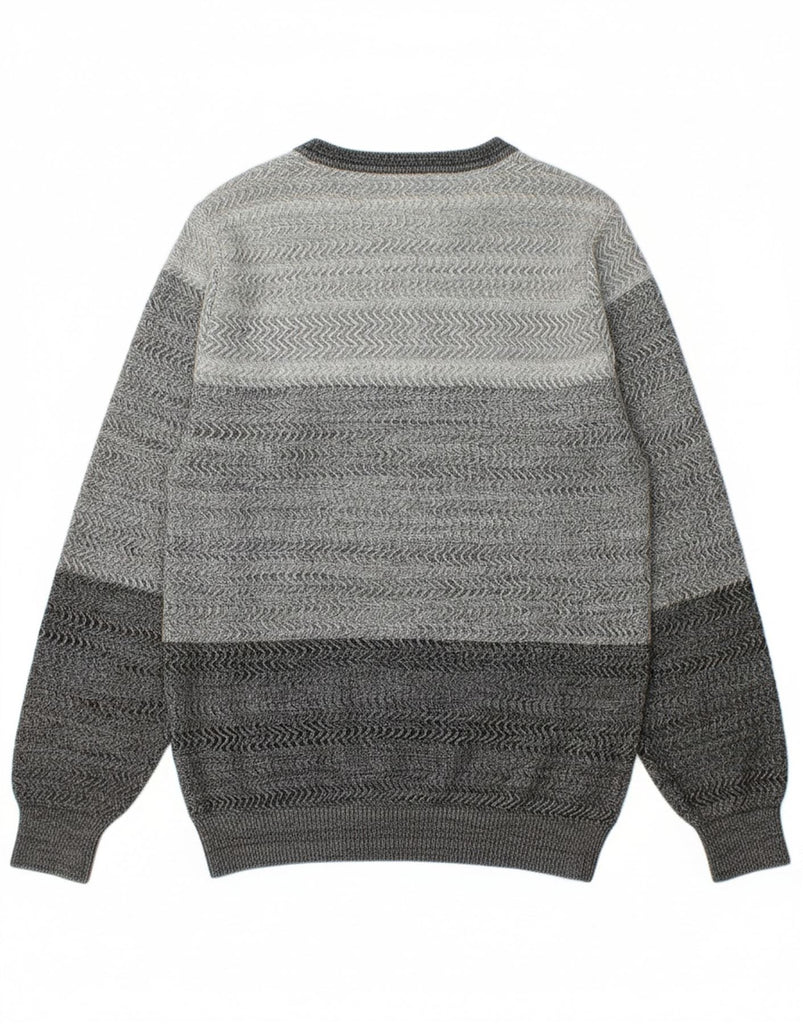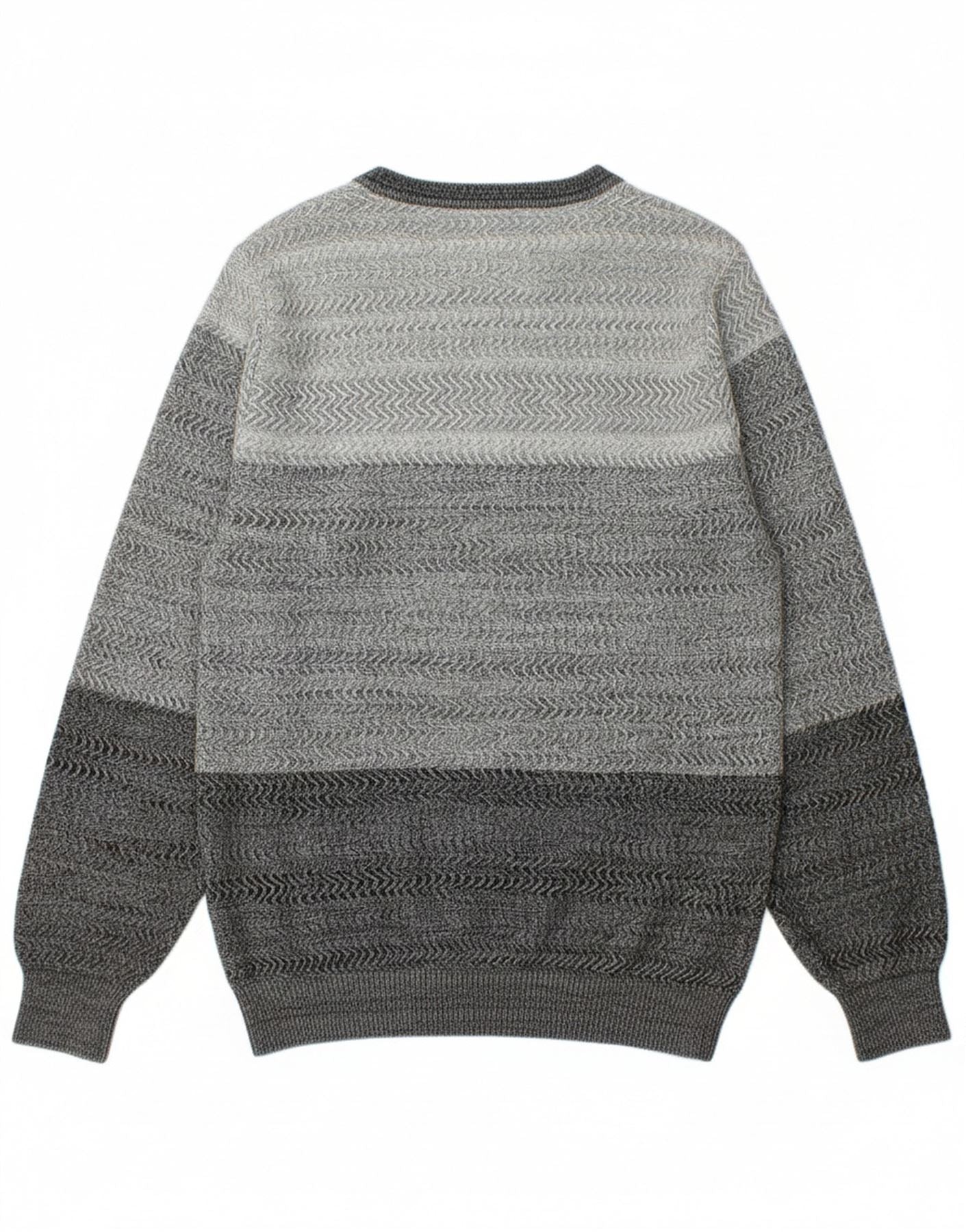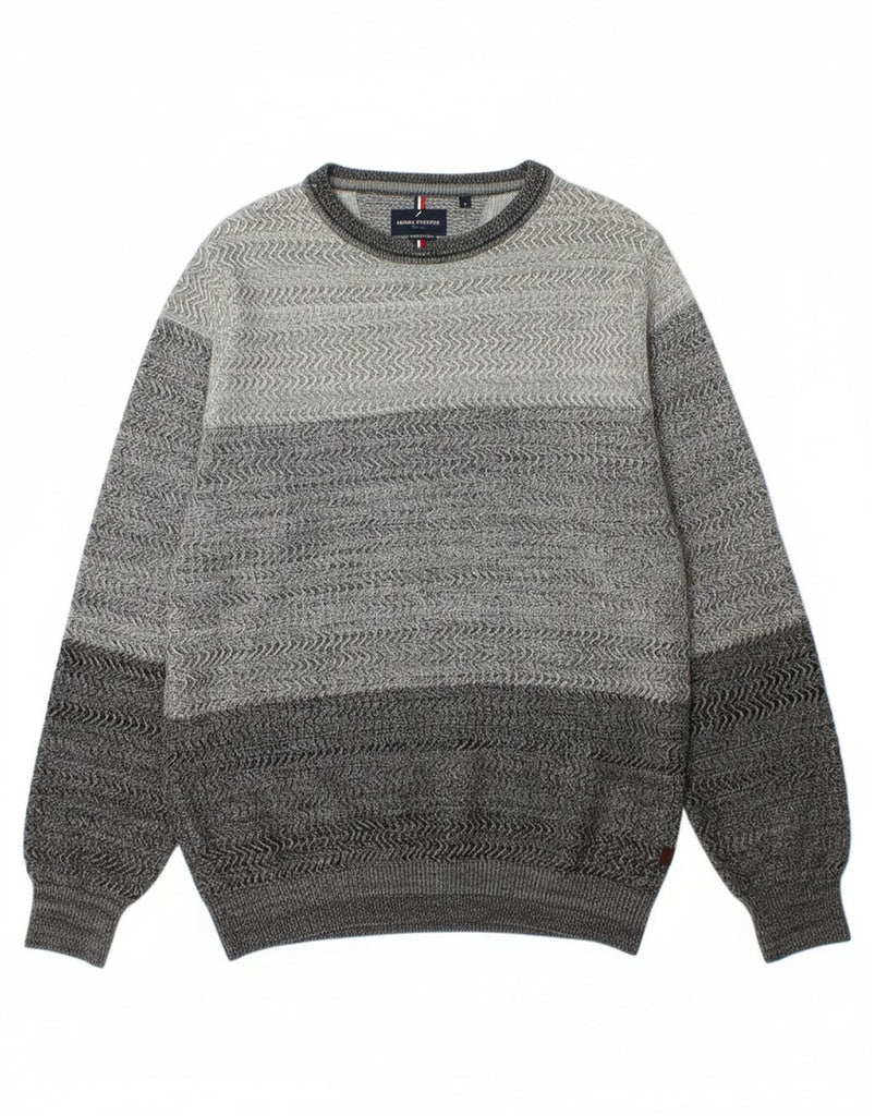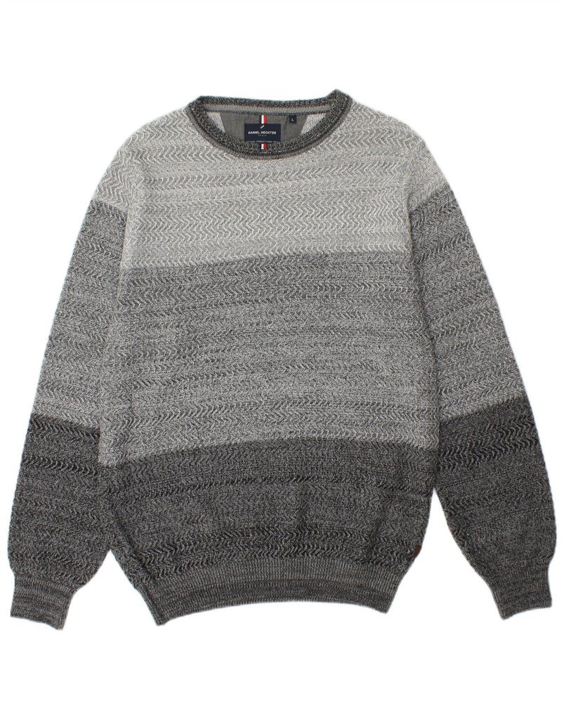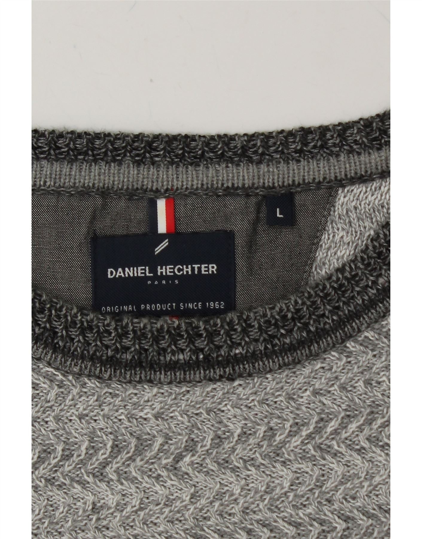 DANIEL HECHTER Mens Crew Neck Jumper Sweater Large Grey Chevron Cotton