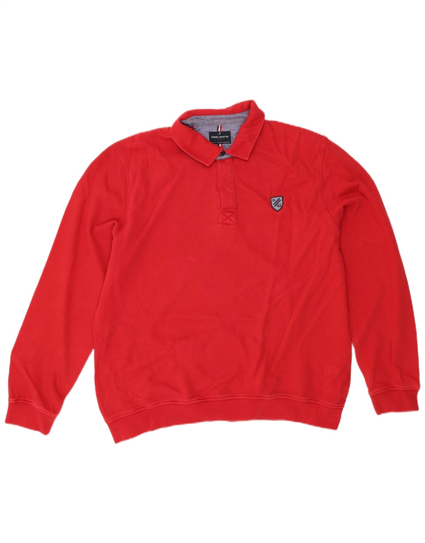 DANIEL HECHTER Mens Polo Neck Jumper Sweater 3XL Red Cotton