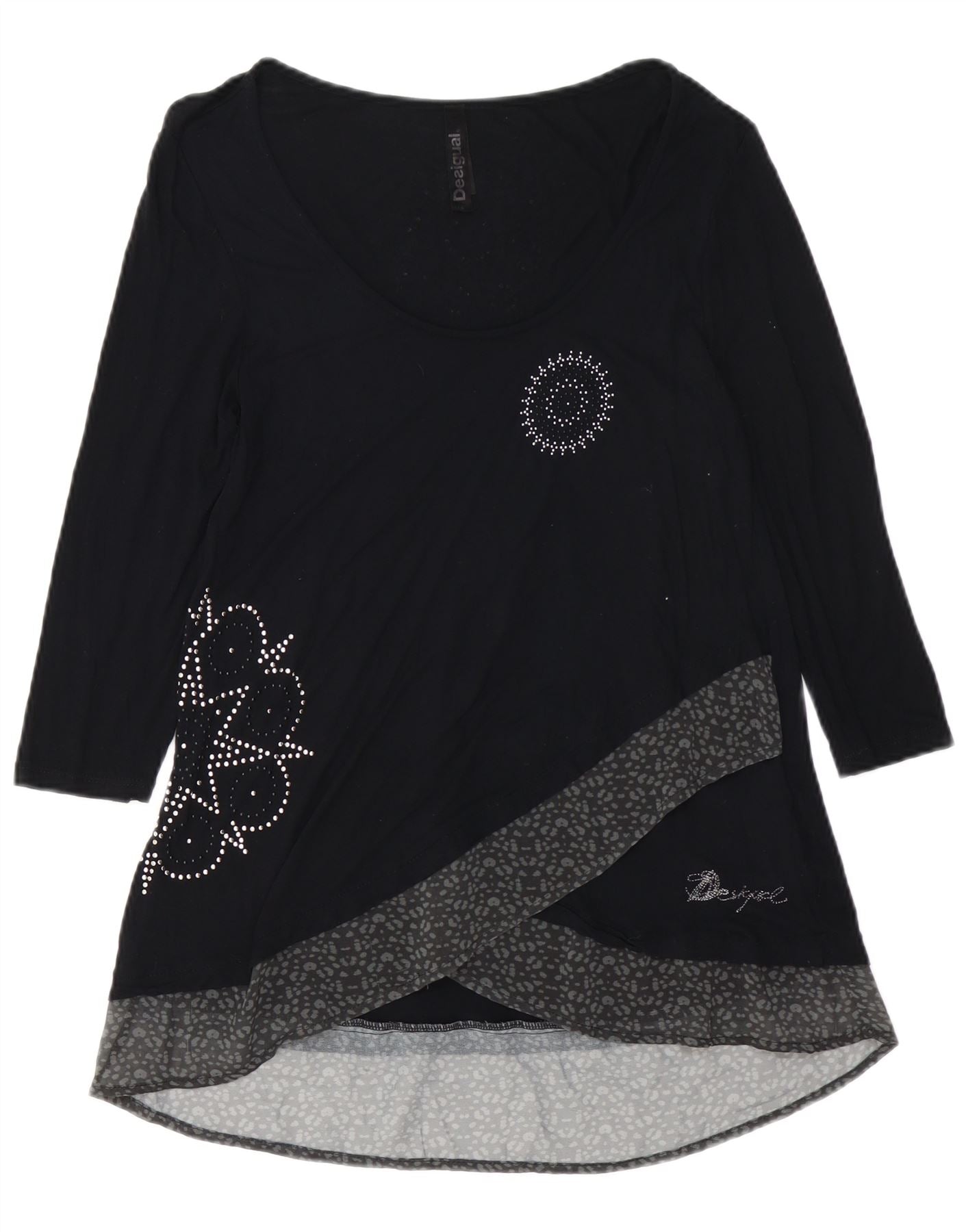 DESIGUAL Rochie A-Line cu mâneci 3/4 pentru femei UK 12 Medium Black Viscose