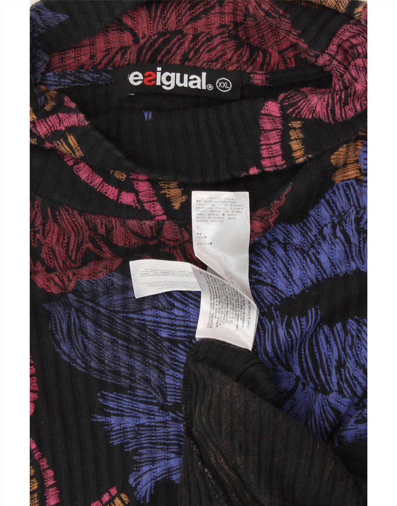 DESIGUAL Womens Blouse Top UK 20 2XL Black Floral Cotton