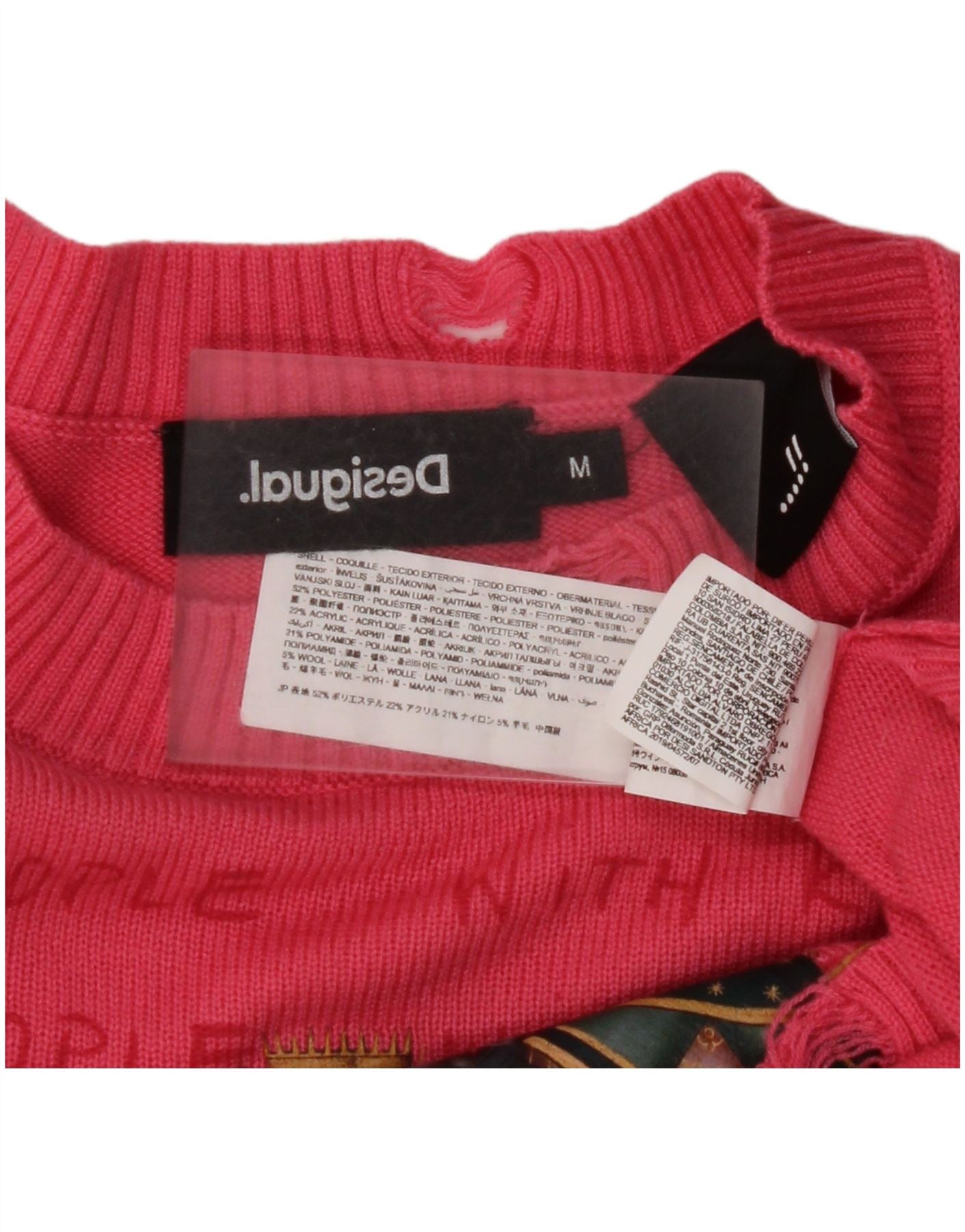 DESIGUAL Pulover crop cu decolteu cu decolteu rotund pentru femei UK 14 Roz mediu