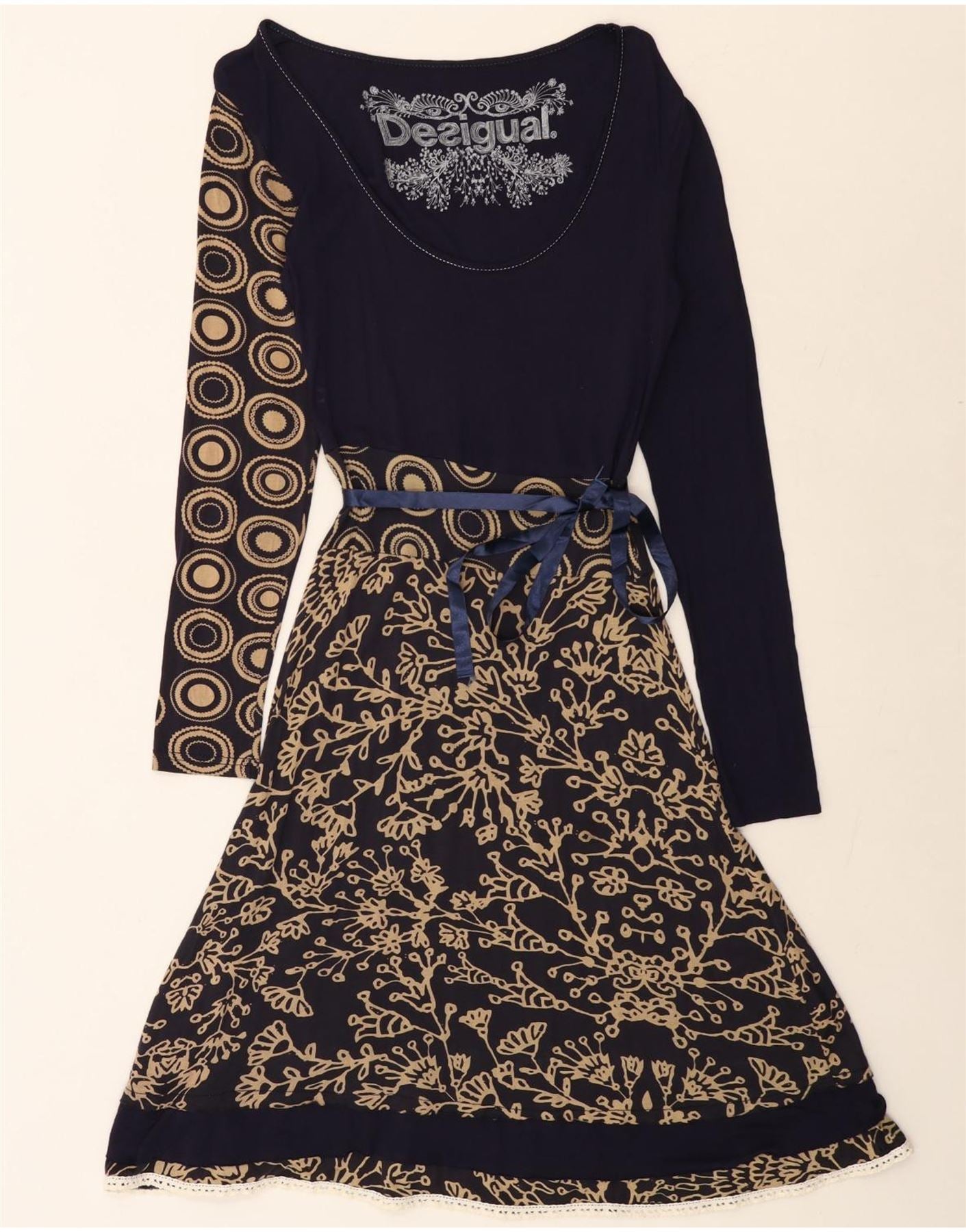 DESIGUAL Rochie A-Line Grafică pentru Femei UK 12 Medium Bleumarin Floral