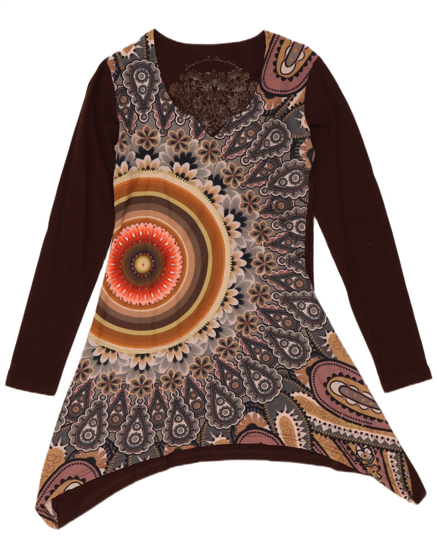 DESIGUAL Rochie tunică asimetrică cu grafică pentru femei UK 10 mic maro floral