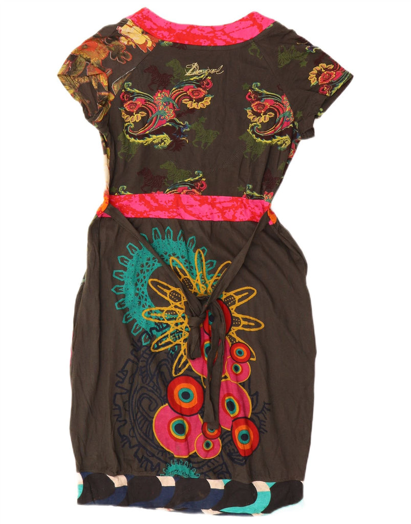 DESIGUAL Womens Graphic Bubble Dress UK 12 Medium Grey Floral Cotton