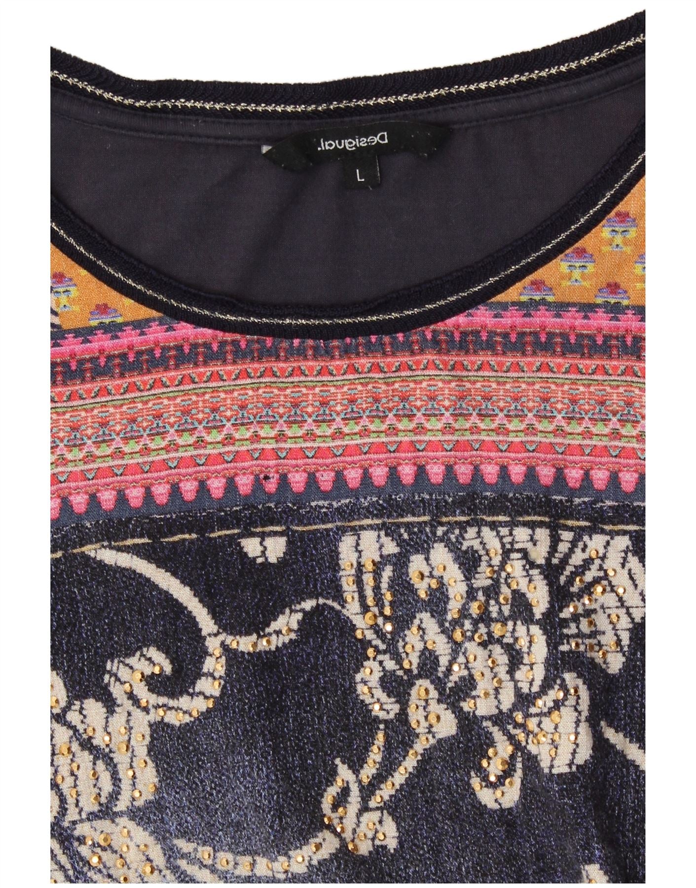 DESIGUAL Top cu grafică pentru femei cu mâneci 3/4 UK 14 mare, gri, floral