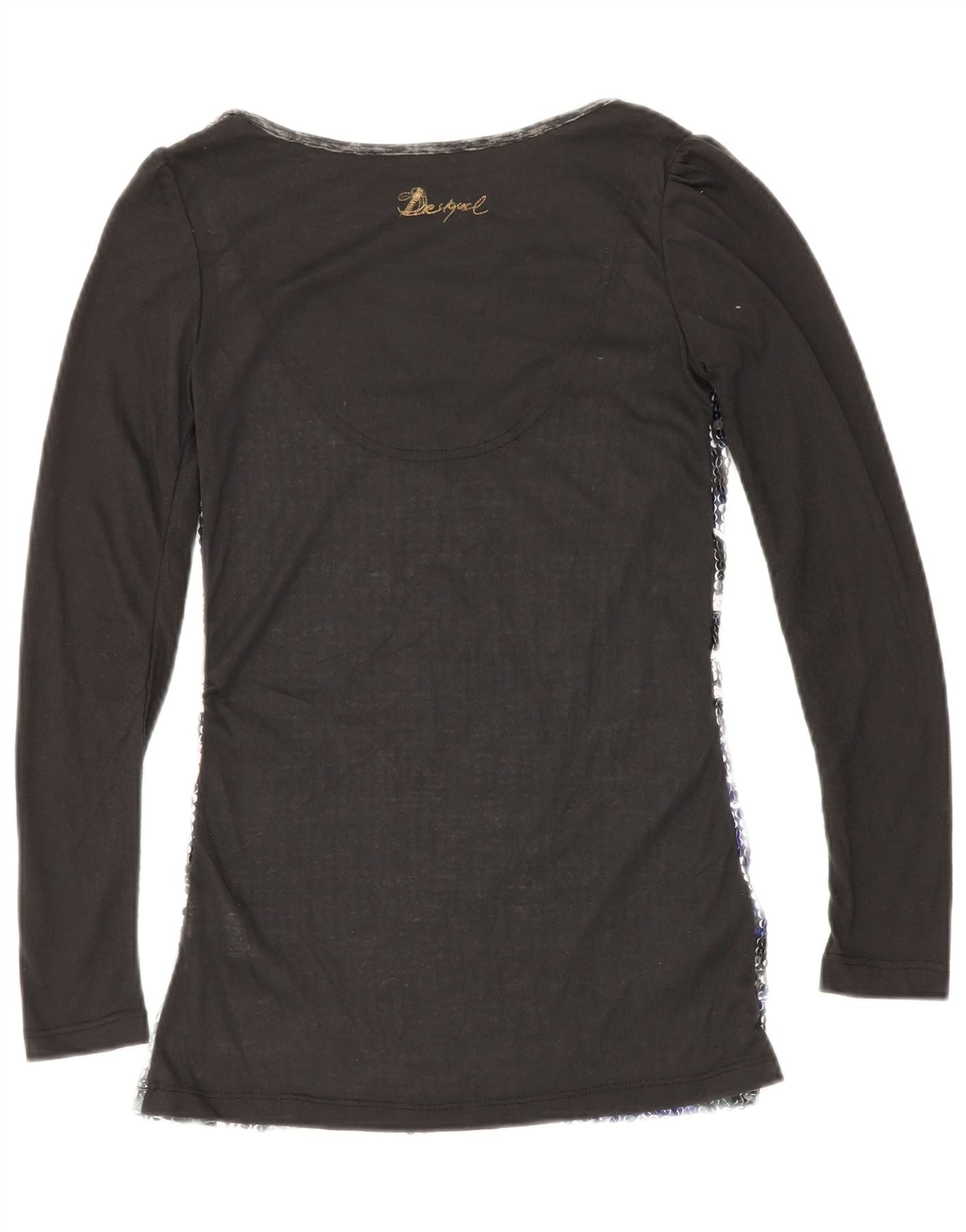 DESIGUAL Top grafic pentru femei cu mânecă lungă UK 10 Poliester negru mic