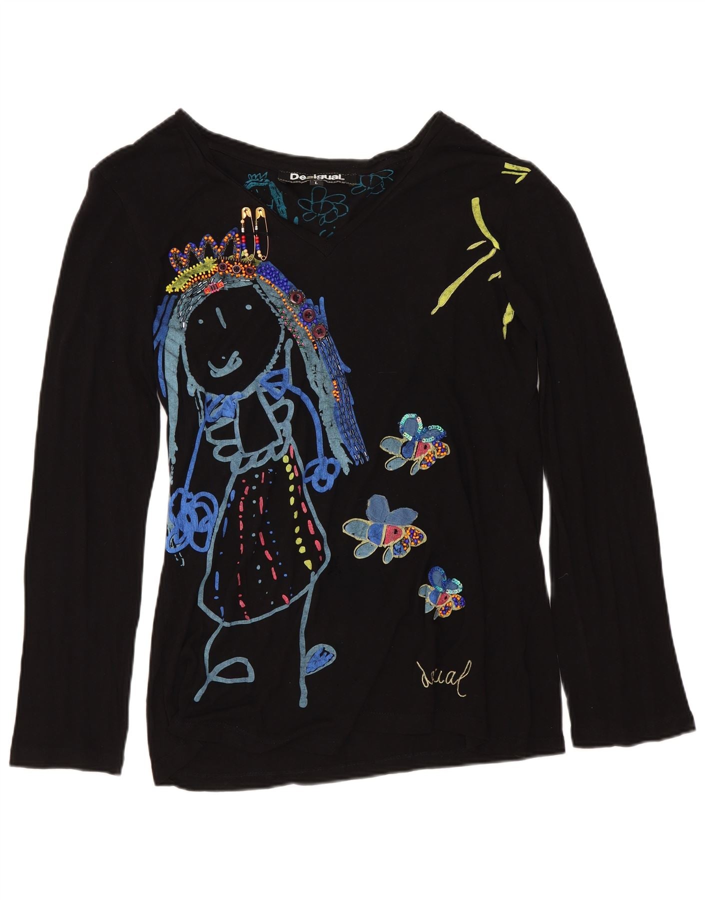 DESIGUAL Top grafic pentru femei cu mânecă lungă UK 16 mare negru