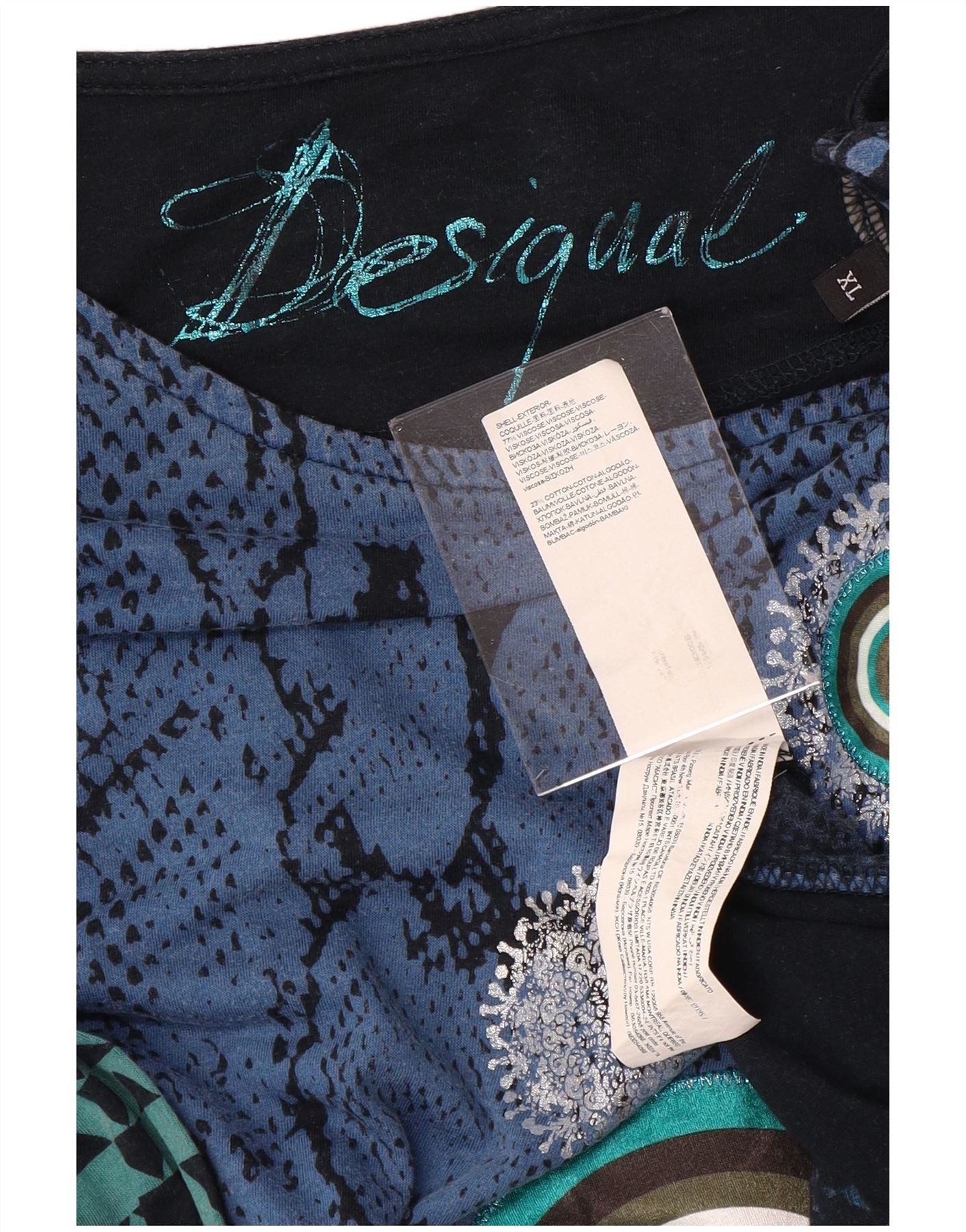 DESIGUAL Top grafic pentru femei cu mânecă lungă UK 18 XL, albastru, viscoză cu imprimeu animal