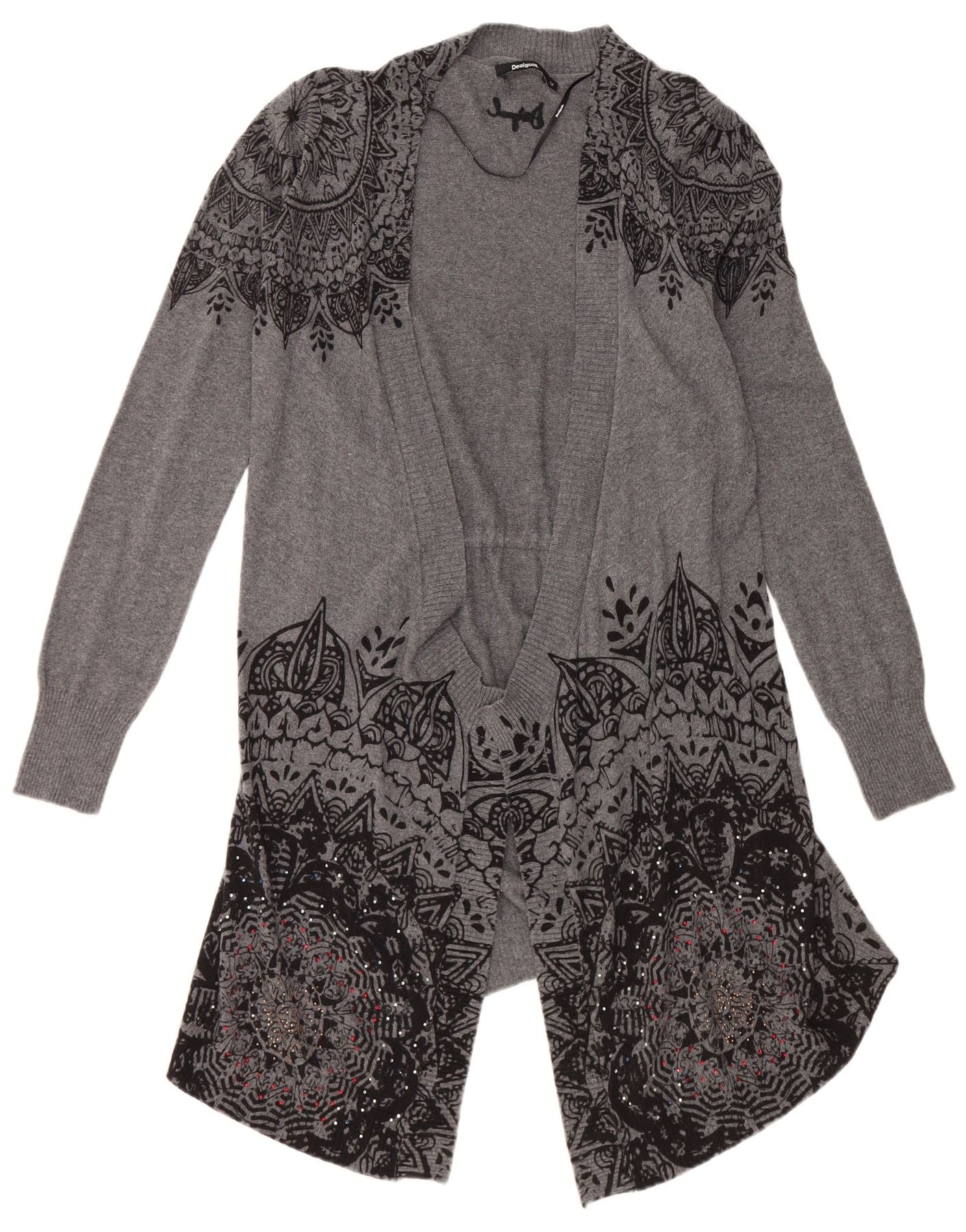 Pulover cardigan deschis pentru femei DESIGUAL UK 12 Medium Gri Floral