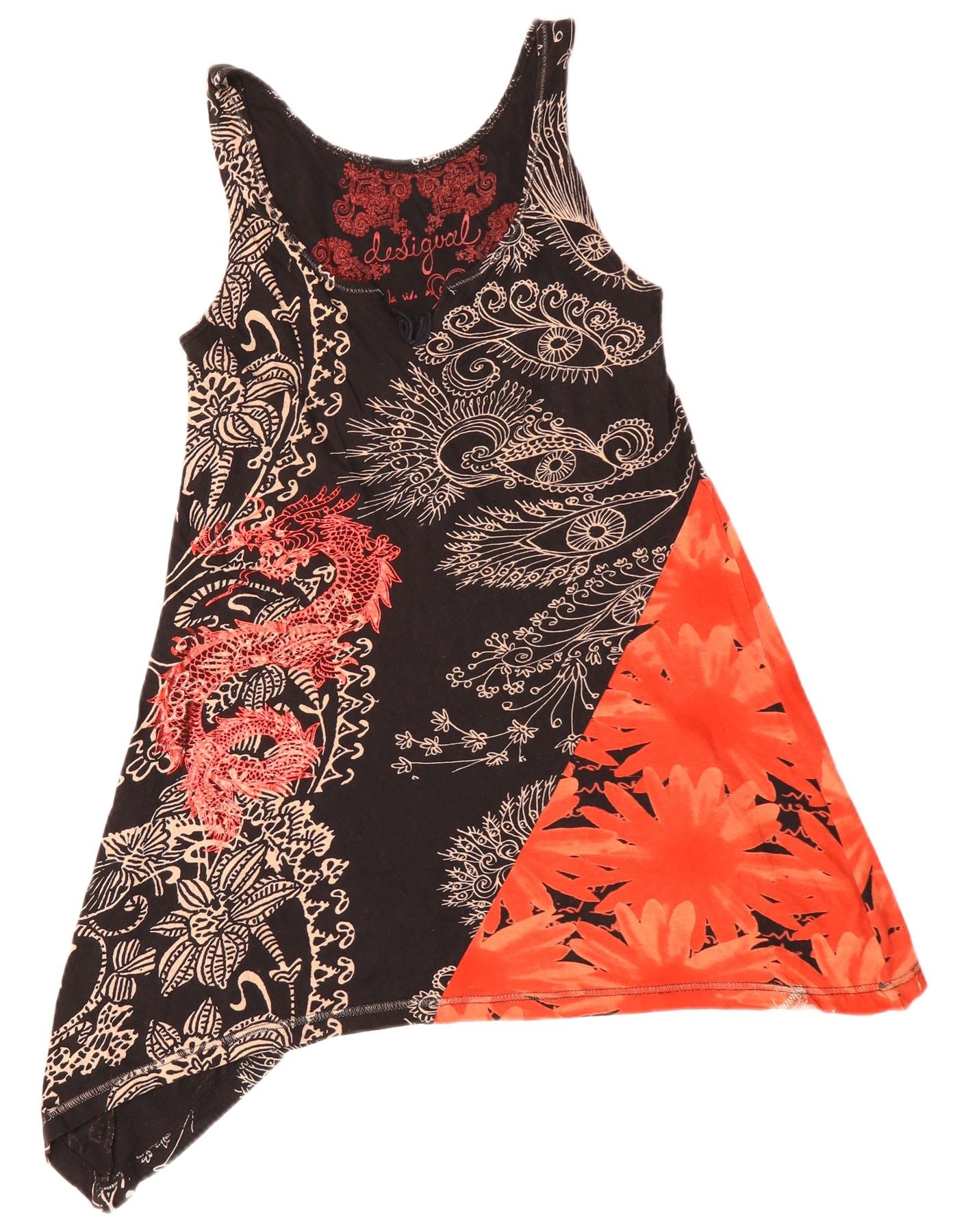 DESIGUAL Top cu tunică asimetrică fără mâneci pentru femei UK 10 Small Black Floral