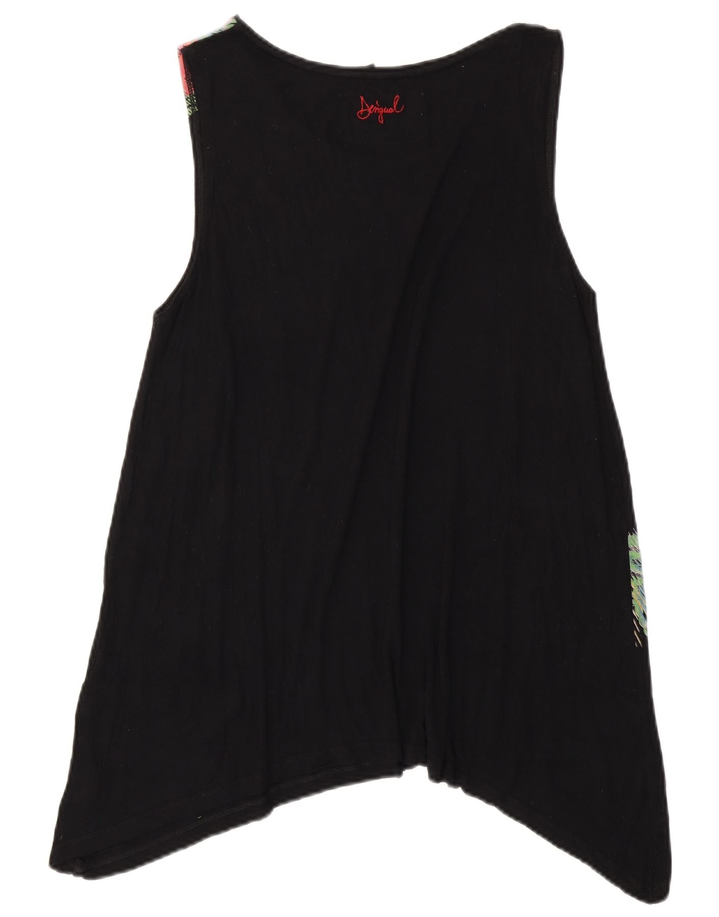 DESIGUAL Top cu tunică asimetrică fără mâneci pentru femei UK 18 XL Negru Floral