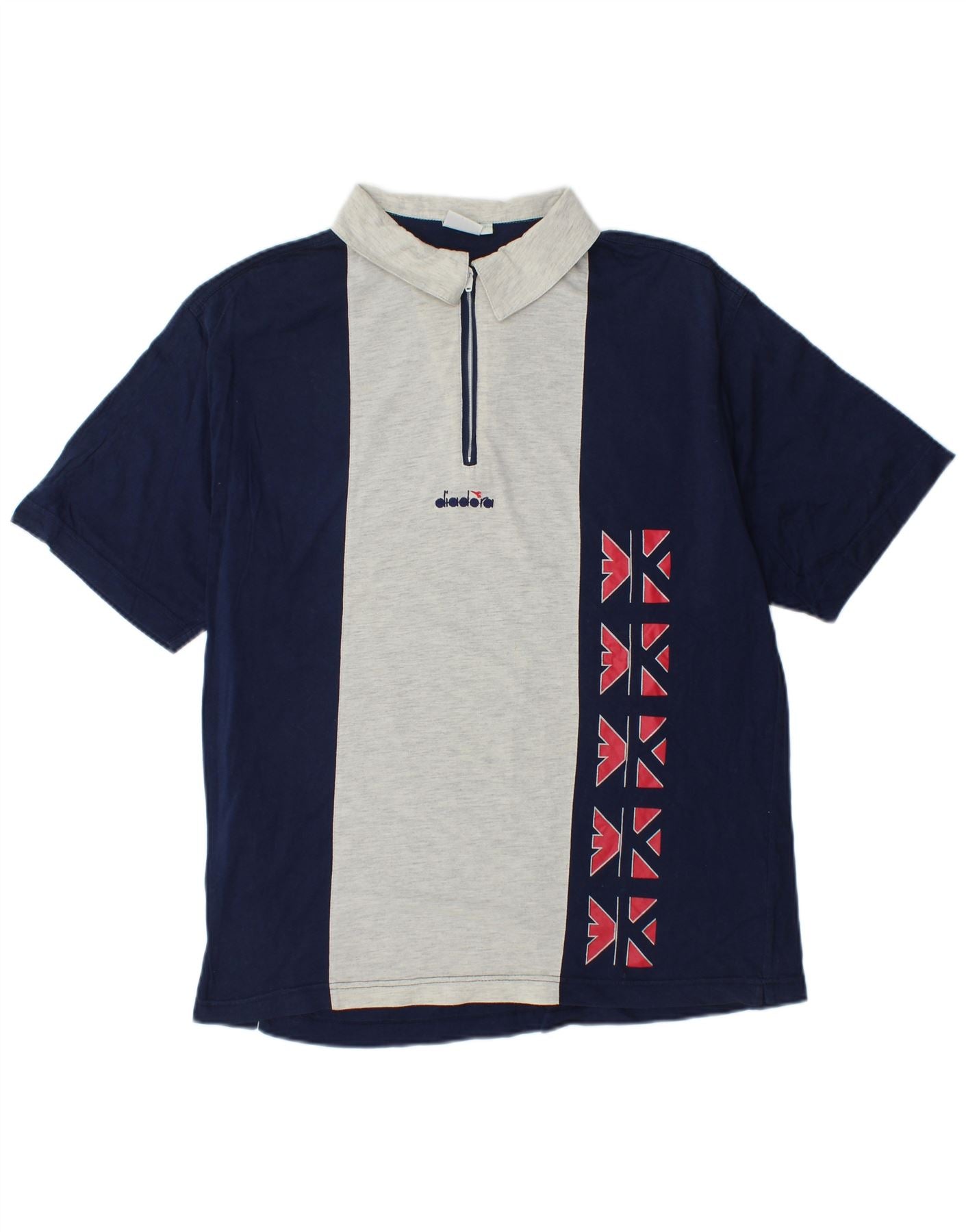 Tricou polo pentru bărbați DIADORA cu grafică mare, din bumbac colorblock, albastru bleumarin