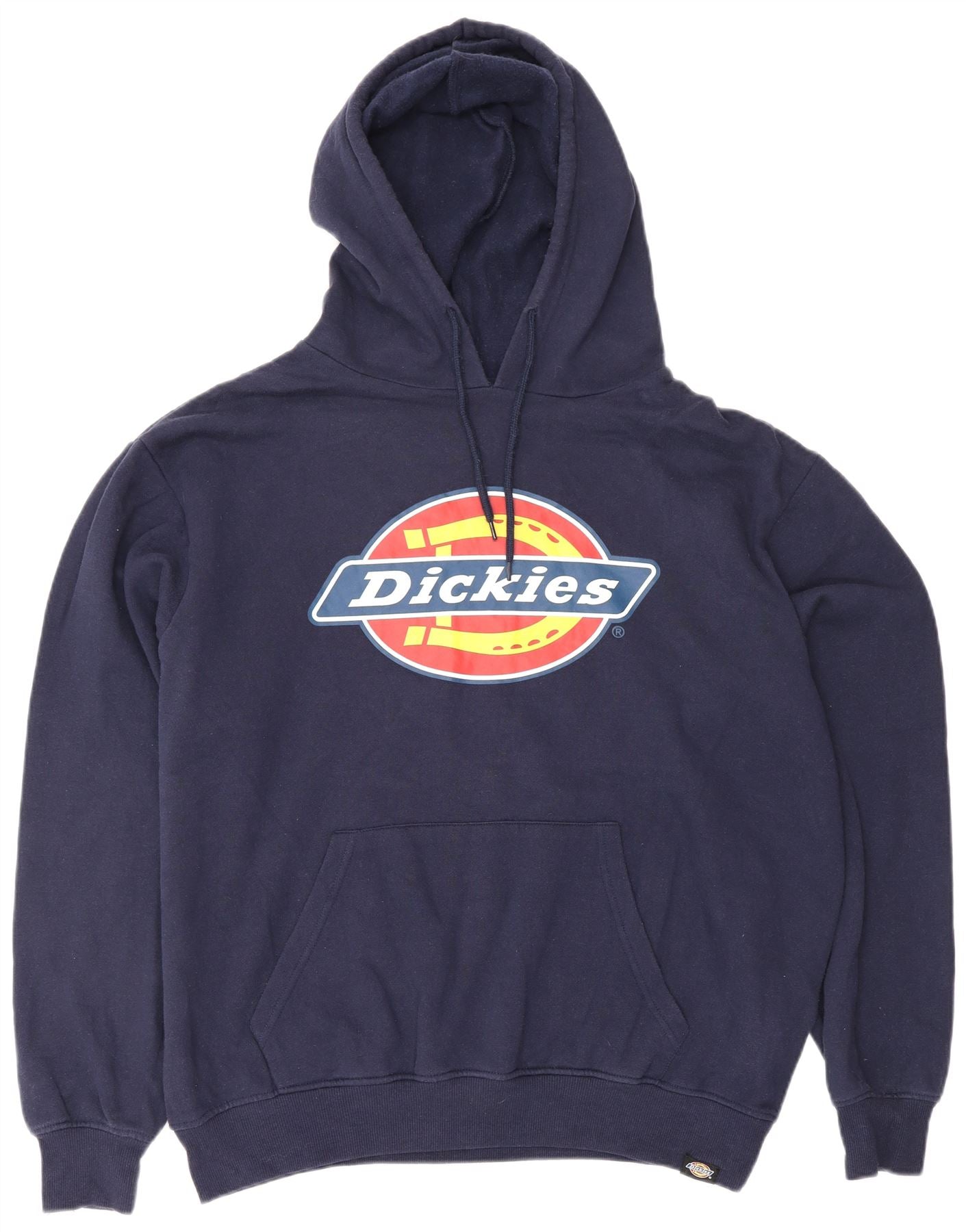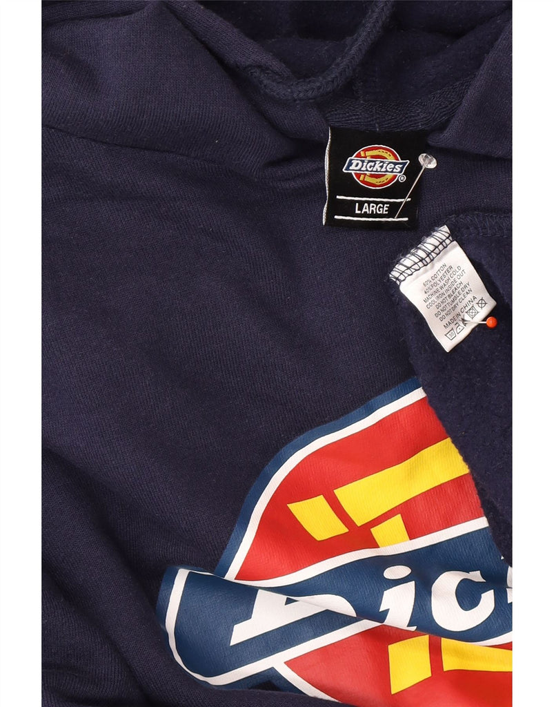 DICKIES Mens Graphic Hoodie Jumper Large Navy Blue Cotton