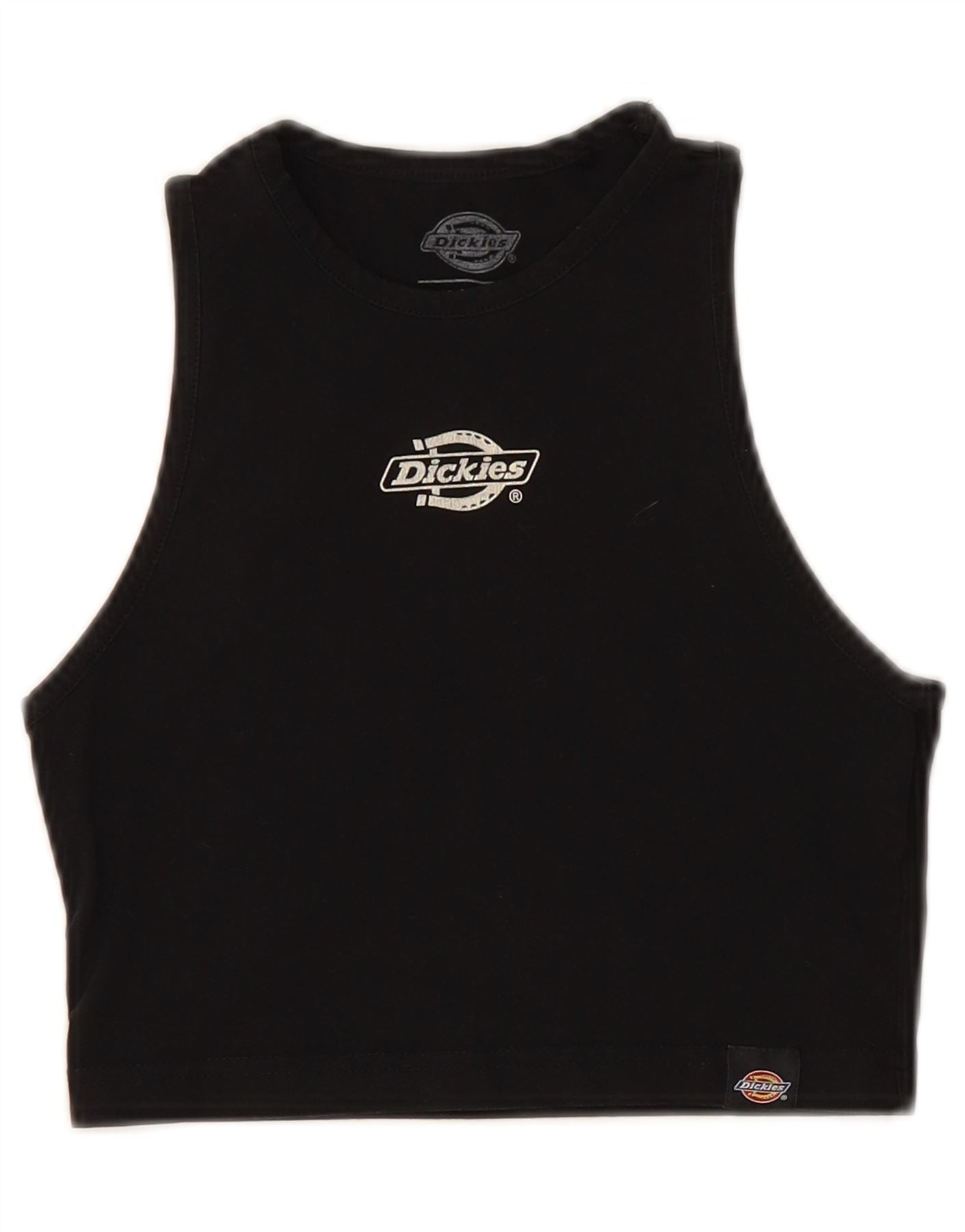 DICKIES Vestă cu grafică crop subțire pentru femei UK 4 XS bumbac negru