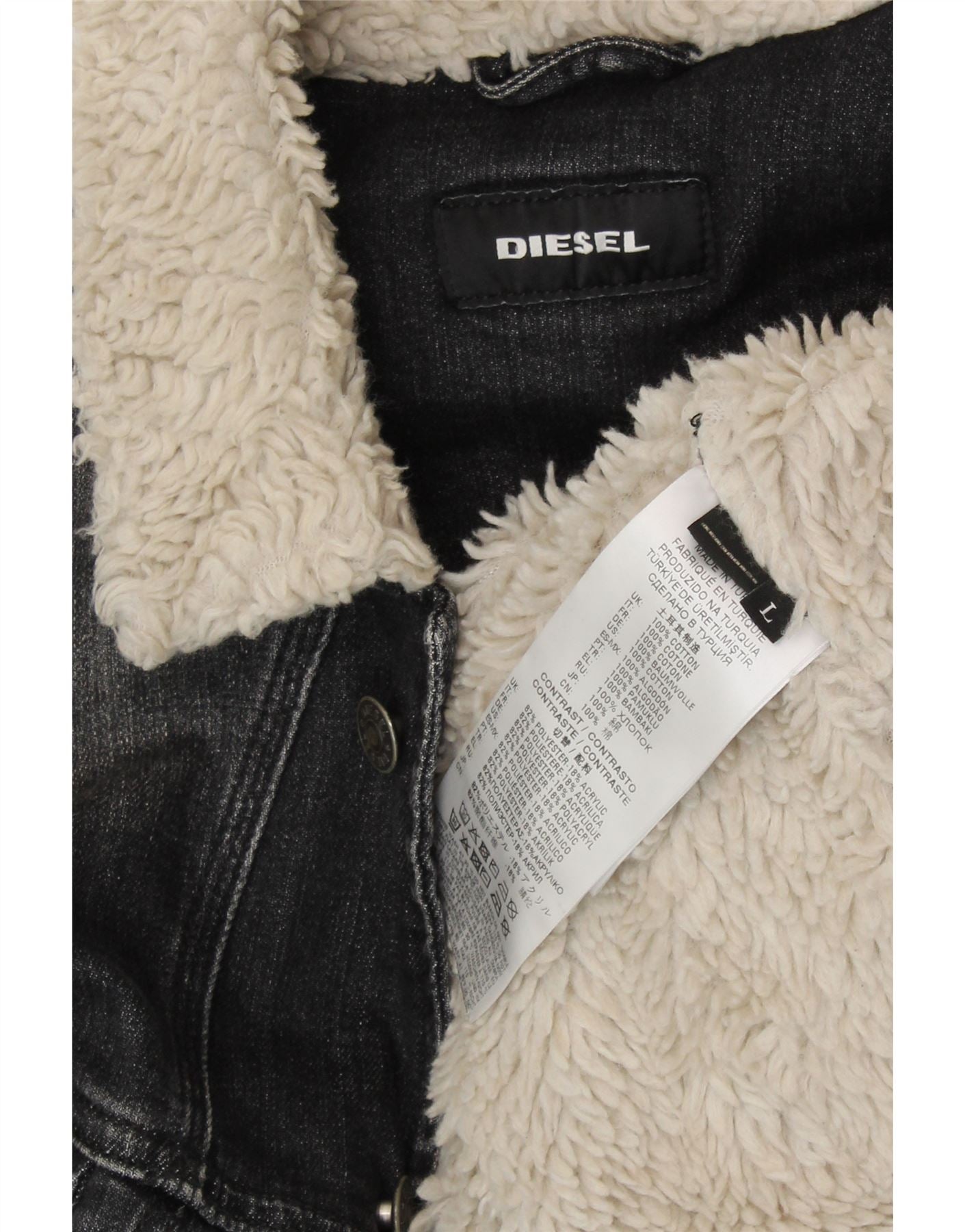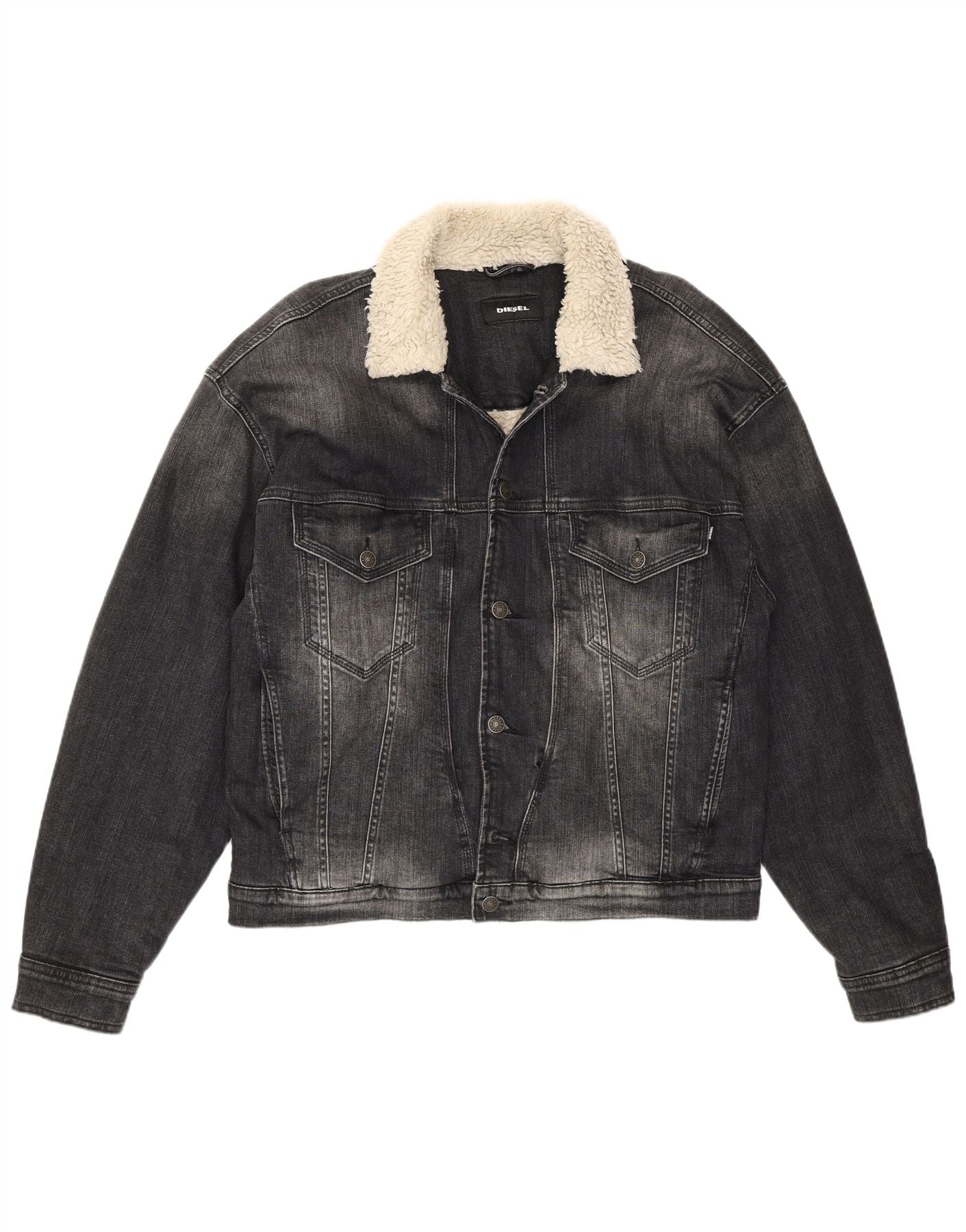 DIESEL Jachetă pentru bărbați din denim Sherpa UK 40, mare, gri bumbac