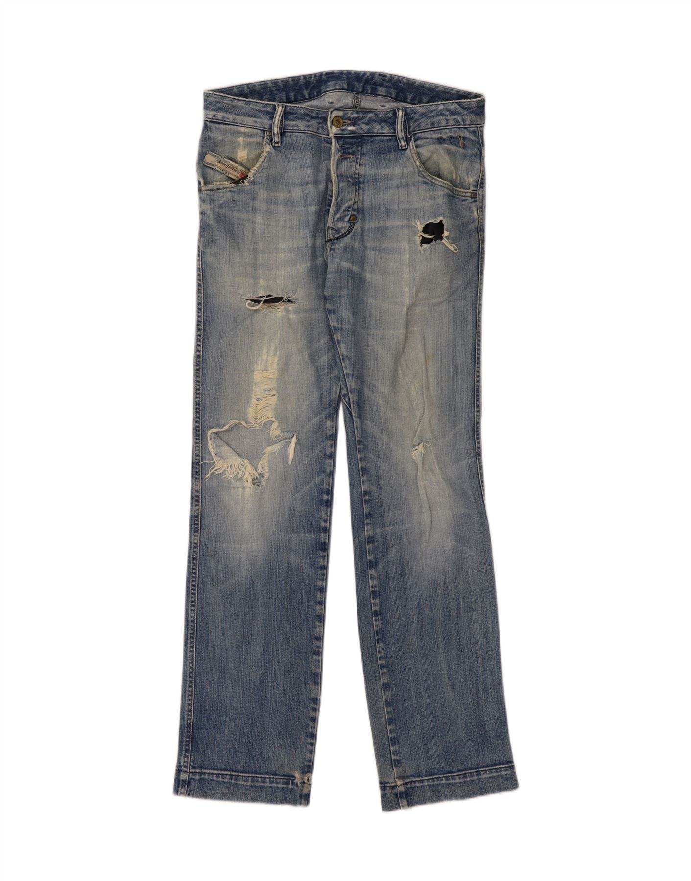 DIESEL Mens Distressed Straight Jeans W30 L32 Blue Cotton Grunge