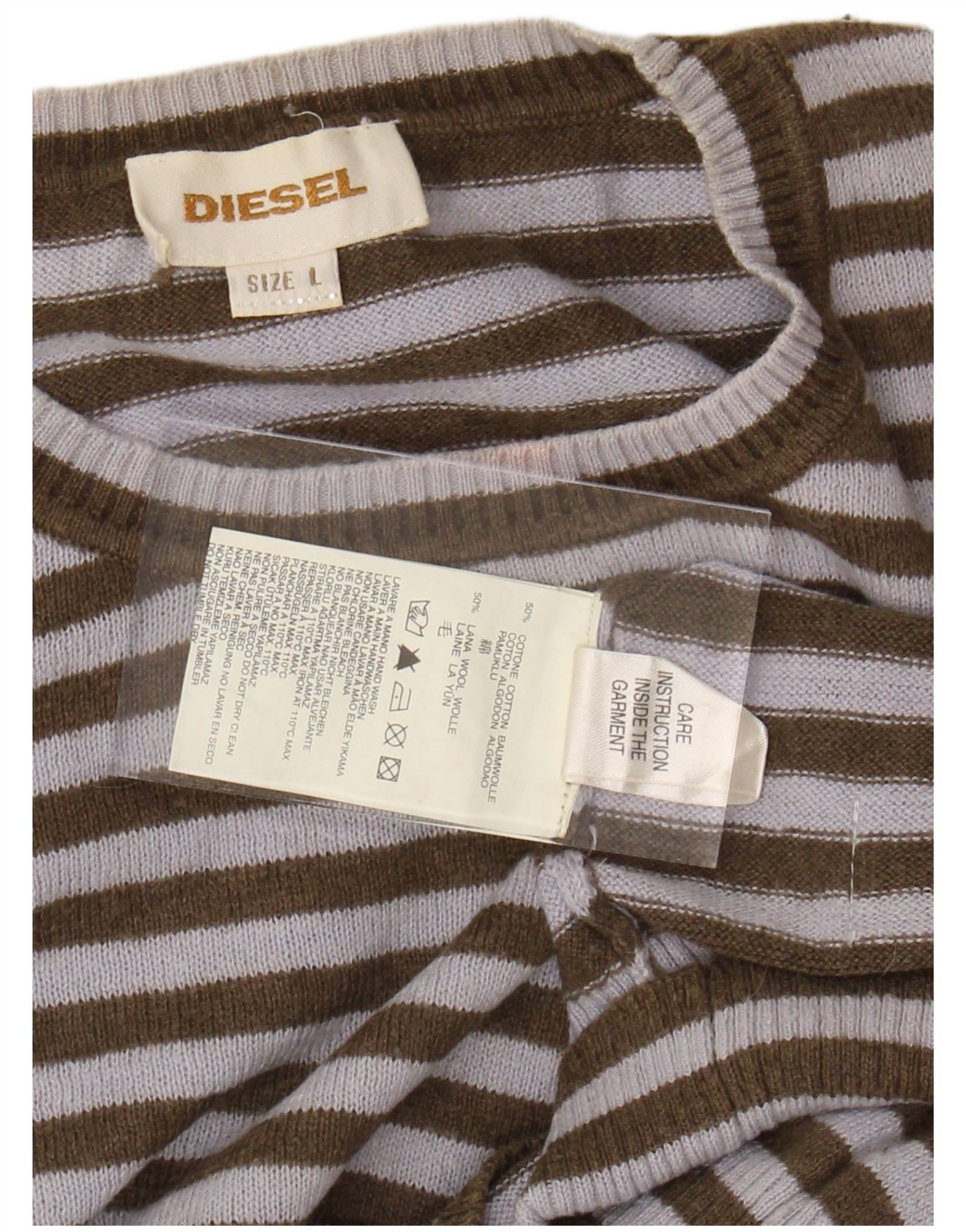 Home > Femei > Îmbrăcăminte Depop > DIESEL Pulover cu gât roșu pentru femei UK 16 Bumbac cu dungi mari kaki