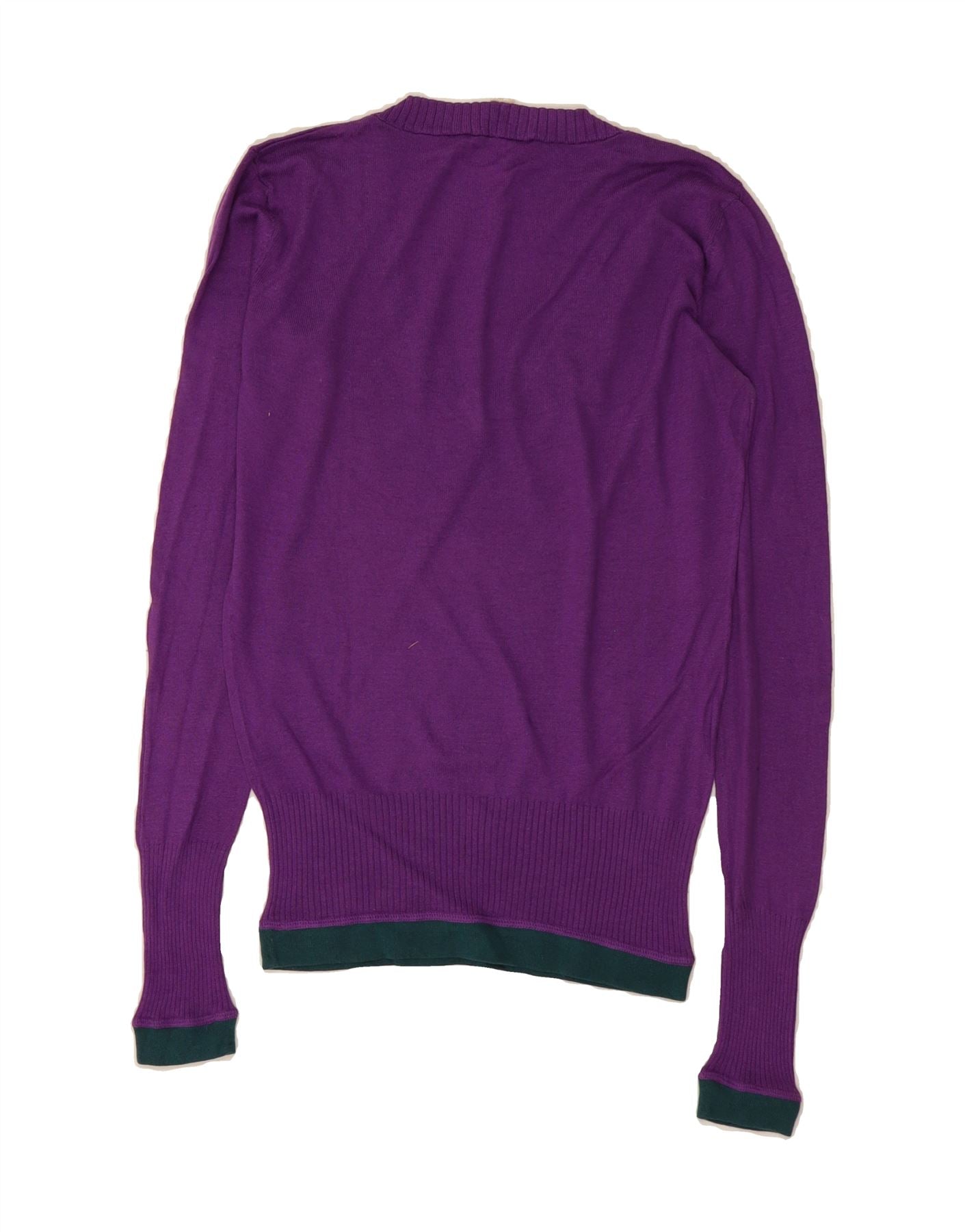 DIESEL Womens Oversized V-Neck Jumper Sweater UK 6 XS Purple Colourblock