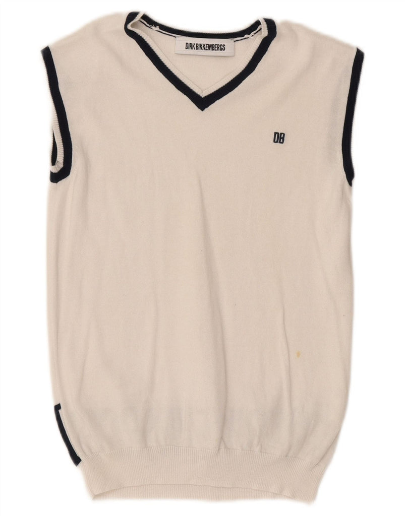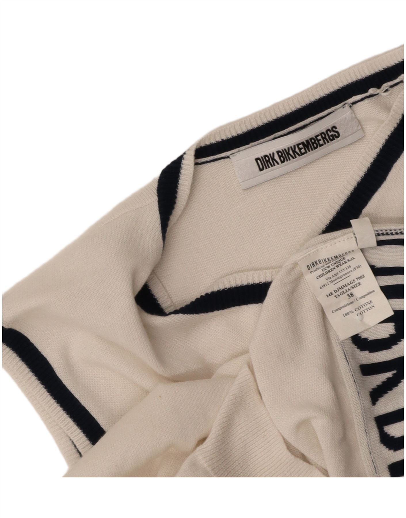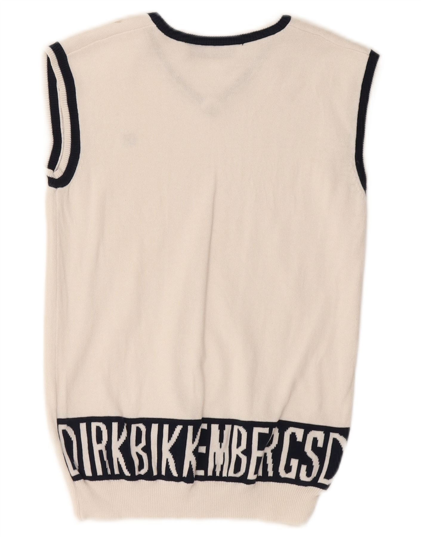 DIRK BIKKEMBERGS Womens Graphic Vest Tank Top IT 38 XS Off White Cotton