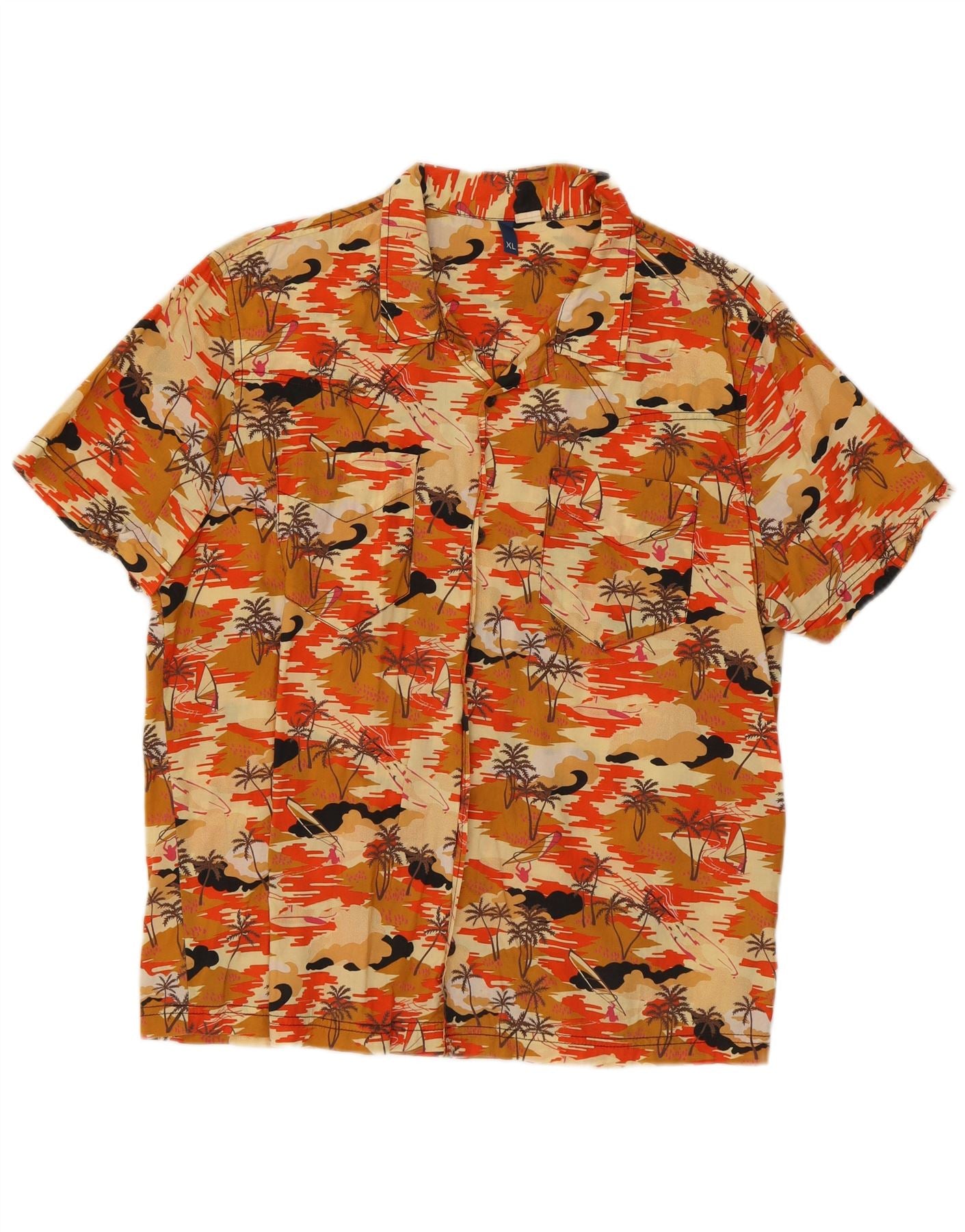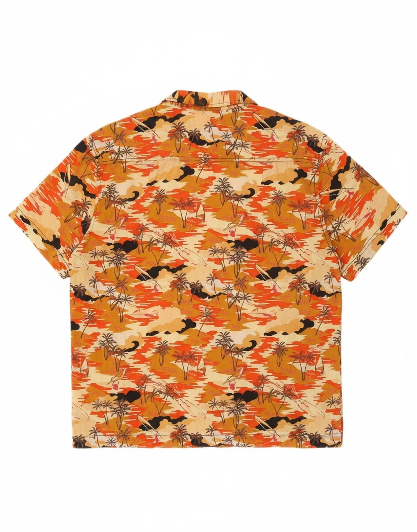 - AI Description: This Divided men's Hawaiian shirt features a vibrant orange floral pattern woven into the fabric. The collared neckline and button-up closure give it a classic, casual style. Short sleeves and a regular fit offer comfort and ease of movement. The woven fabric provides a lightweight feel, perfect for warm weather. Its collared feature adds a touch of refinement to the relaxed silhouette.