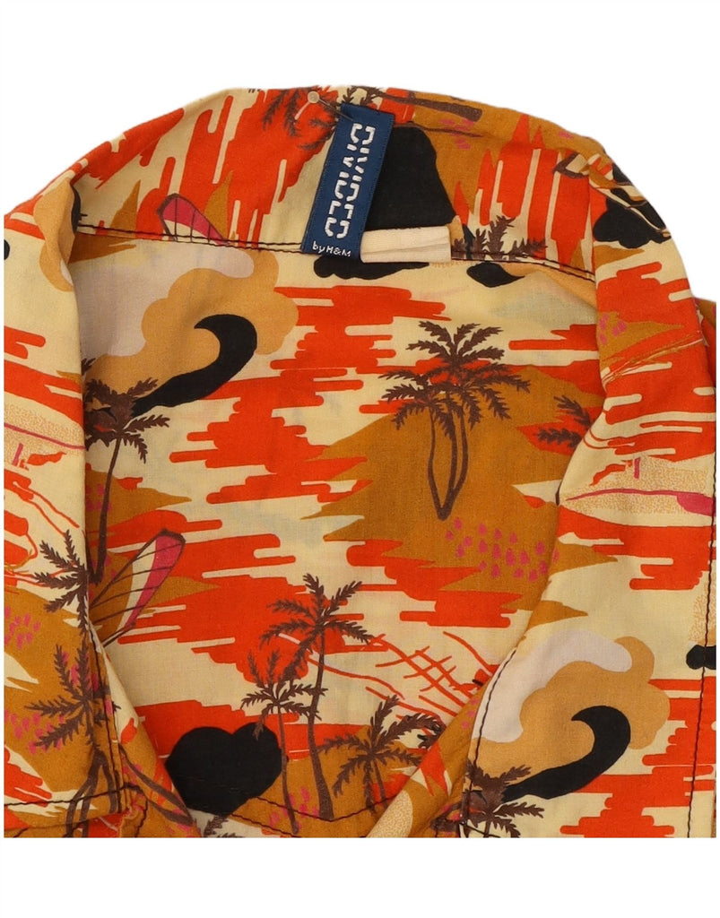 DIVIDED Mens By H&M Short Sleeve Shirt XL Orange Floral Cotton Hawaiian