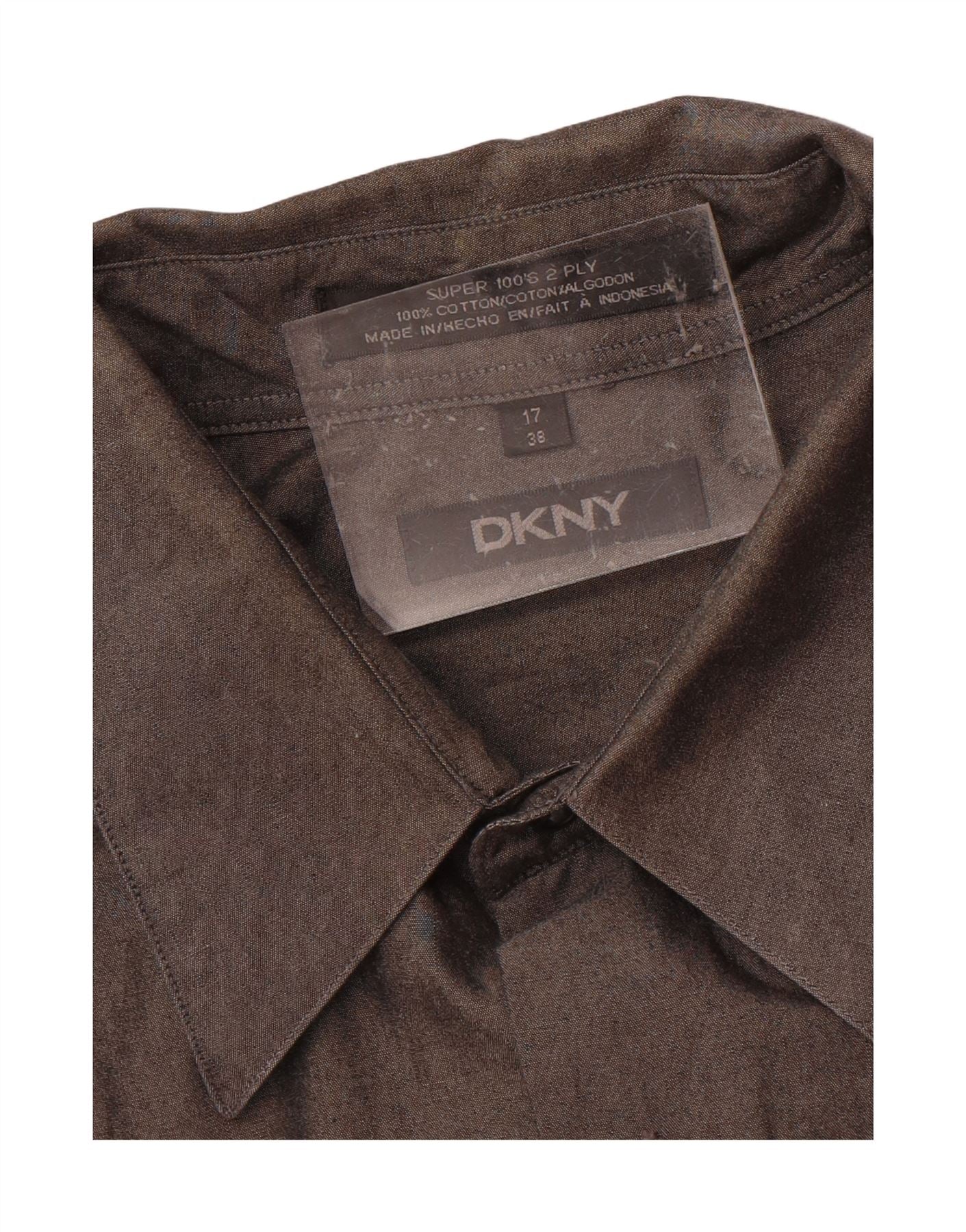 - AI Description: This DKNY men’s formal shirt is crafted from 100% woven cotton in a rich brown hue. It features a classic collared neckline and long sleeves, perfect for professional settings. The button-up front ensures a smart finish, while the regular fit offers comfort and a polished silhouette. Subtle pockets add functional detail to this timeless design. It maintains a classic style for versatile wear.