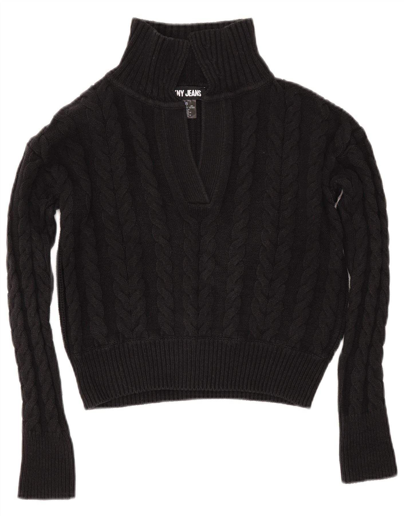 DKNY Crop Overshirt pentru femei Pulover cu gât polo, UK 2 2XS, bumbac negru