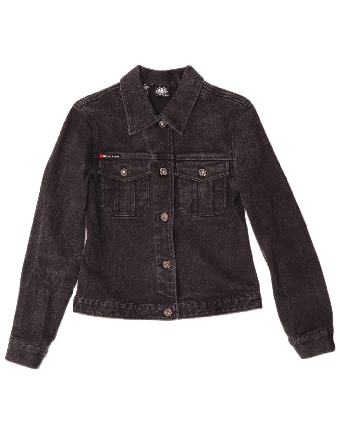 Jachetă de blugi Dkny pentru femei mici, din denim, UK 6 XS, bumbac negru, clasică