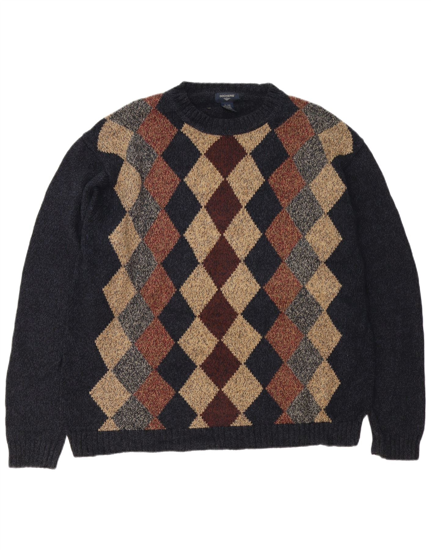 DOCKERS Pulover pentru bărbați cu gât roșu XL, albastru bleumarin, bumbac Argyle/Diamond