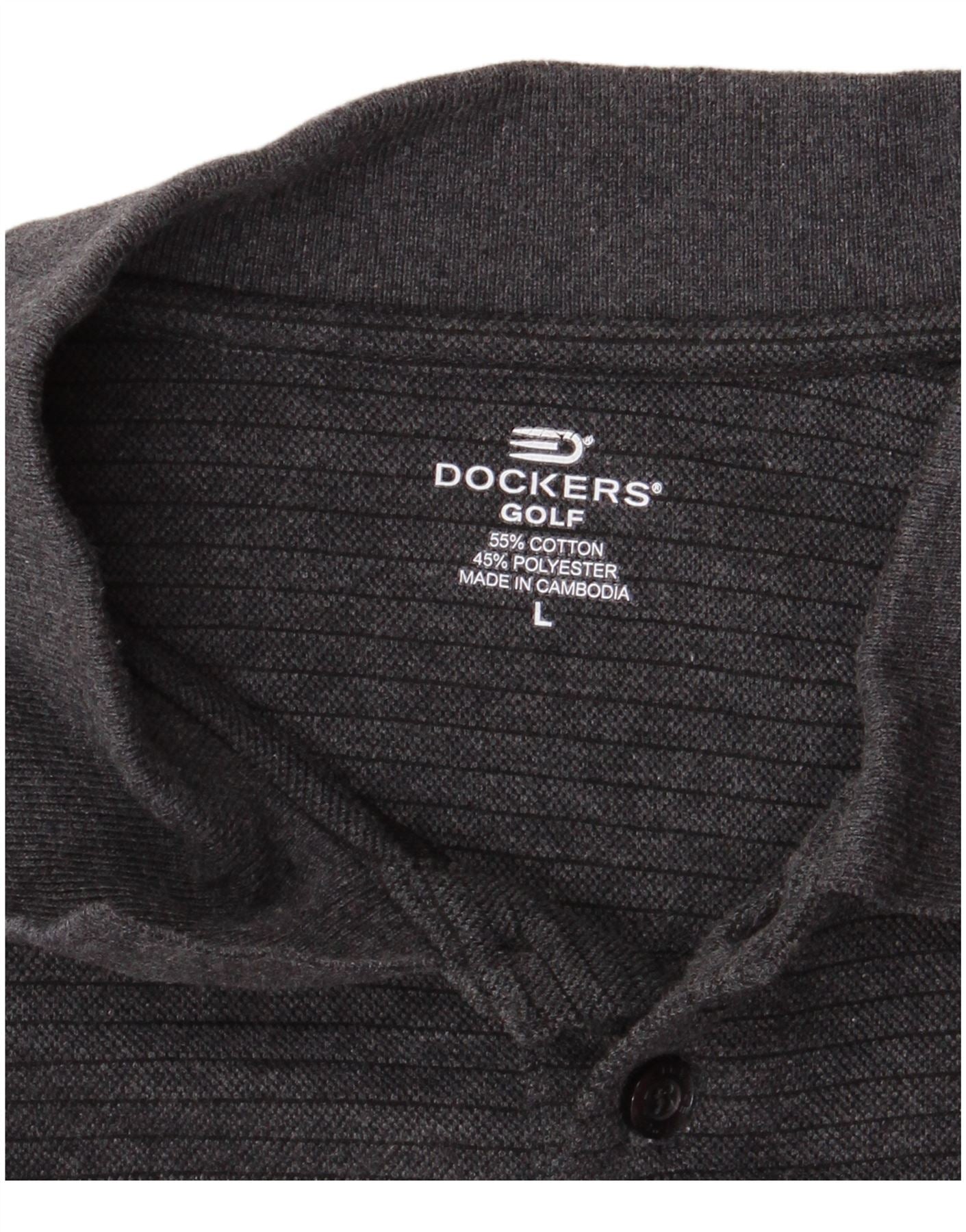 Tricou polo de golf DOCKERS pentru bărbați, bumbac cu dungi gri mari