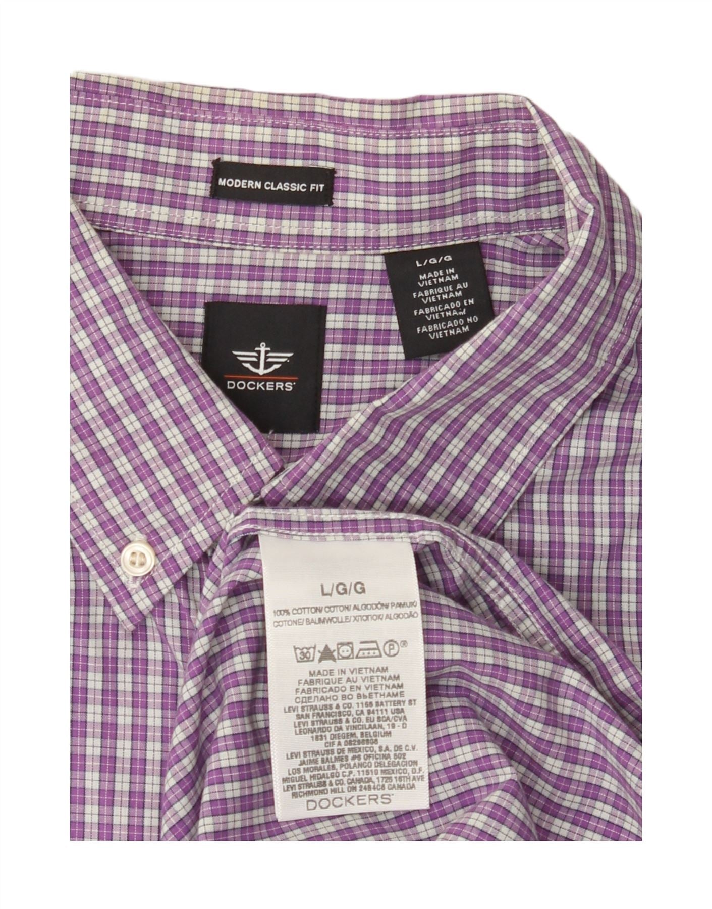 DOCKERS Mens Modern Classic Fit Shirt Large Purple Check Cotton