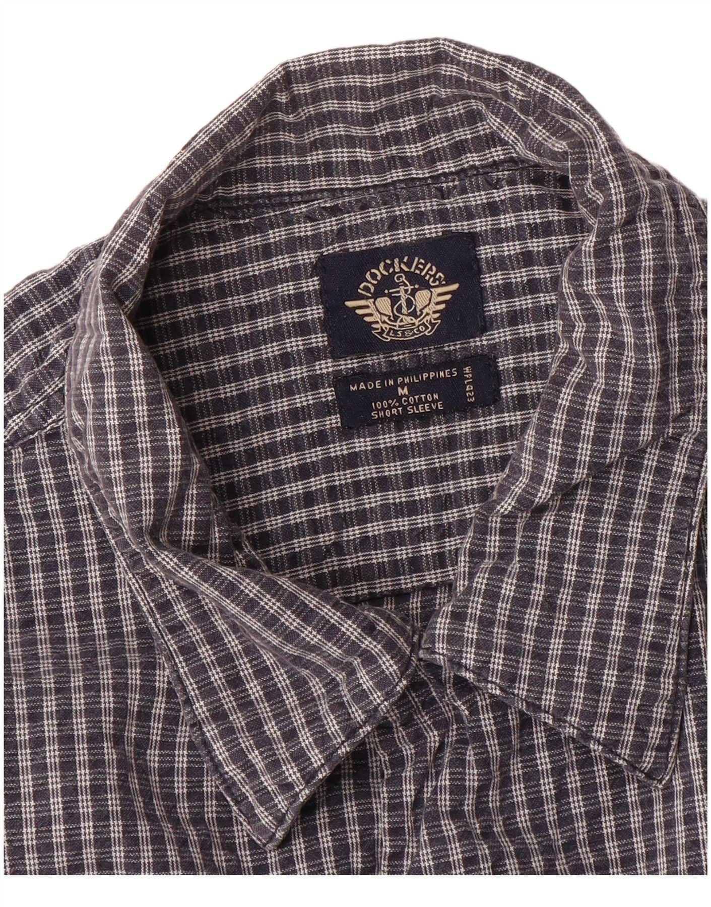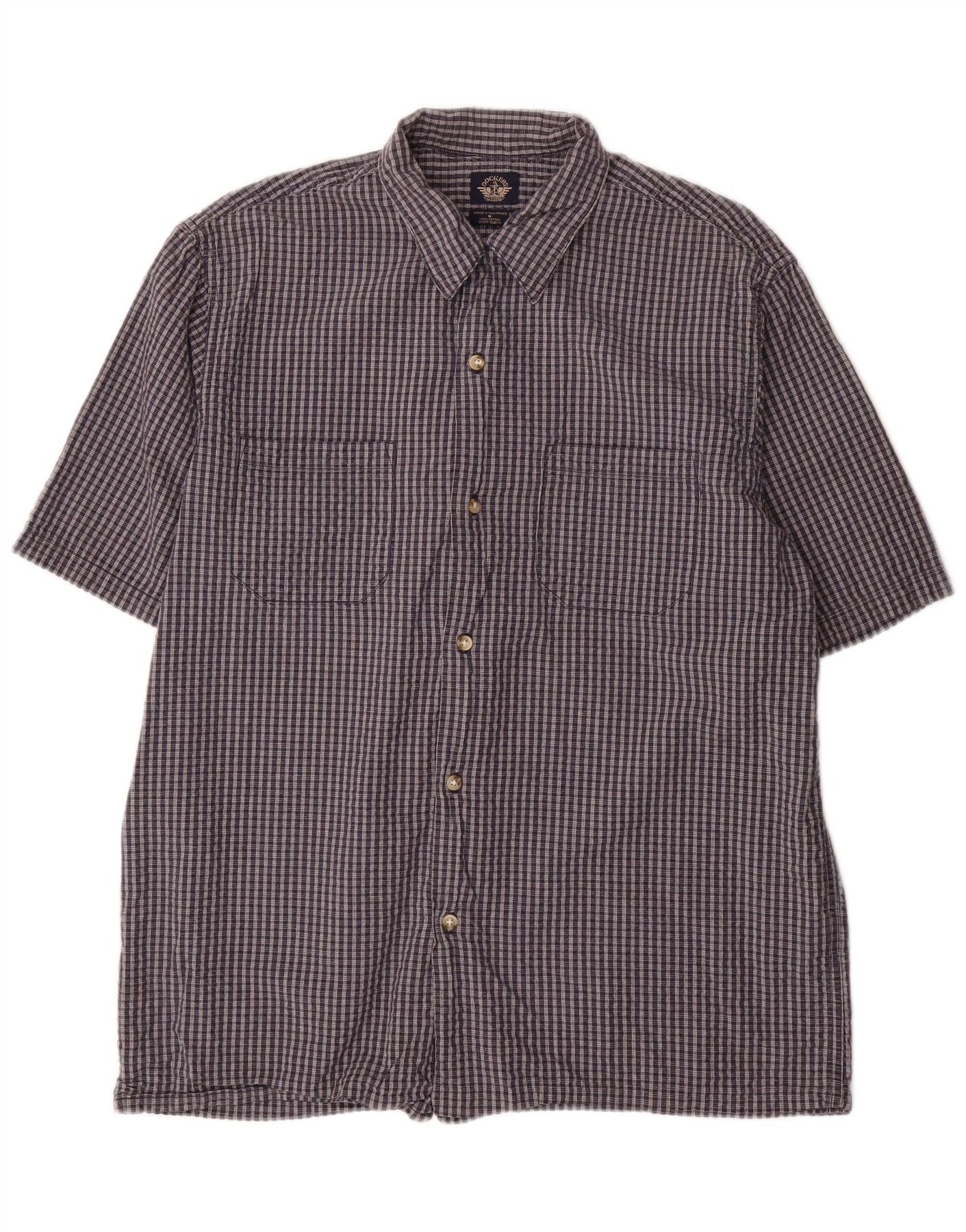 Cămașă cu mânecă scurtă pentru bărbați DOCKERS, bumbac cu carouri, albastru bleumarin mediu