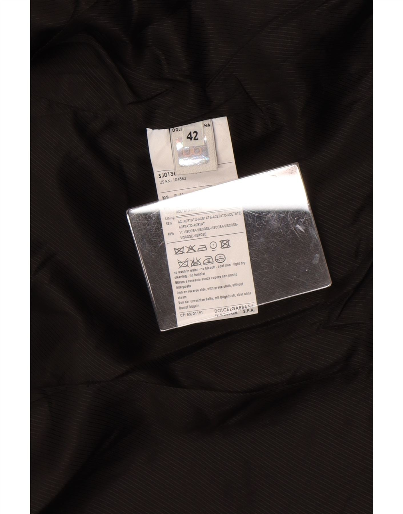 - Compoziția exactă a materialului: 52% acetat, 48% viscoza. Captuseala: 100% acetat