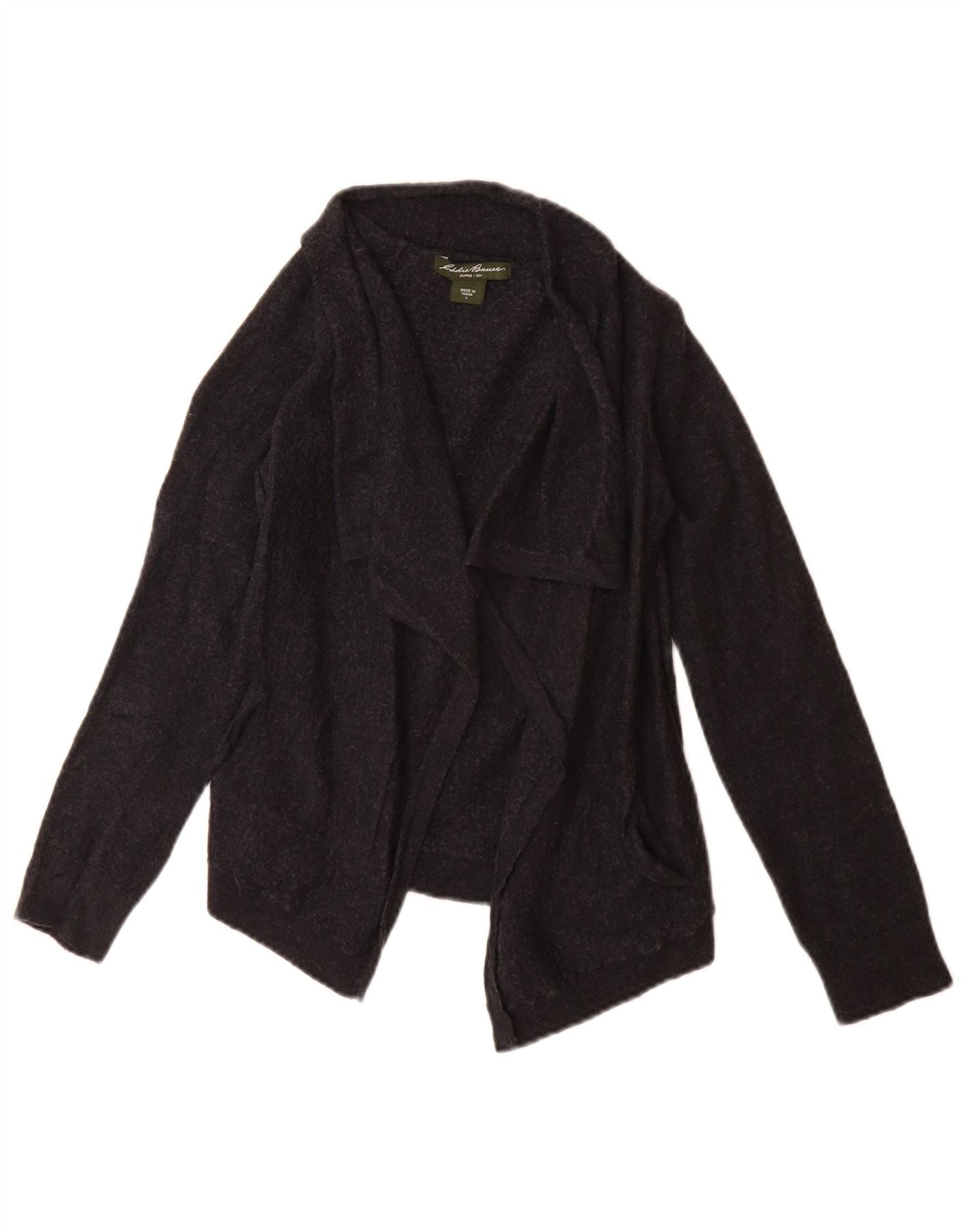 Pulover cardigan pentru fete Eddie Bauer 11-12 ani, lână neagră mare