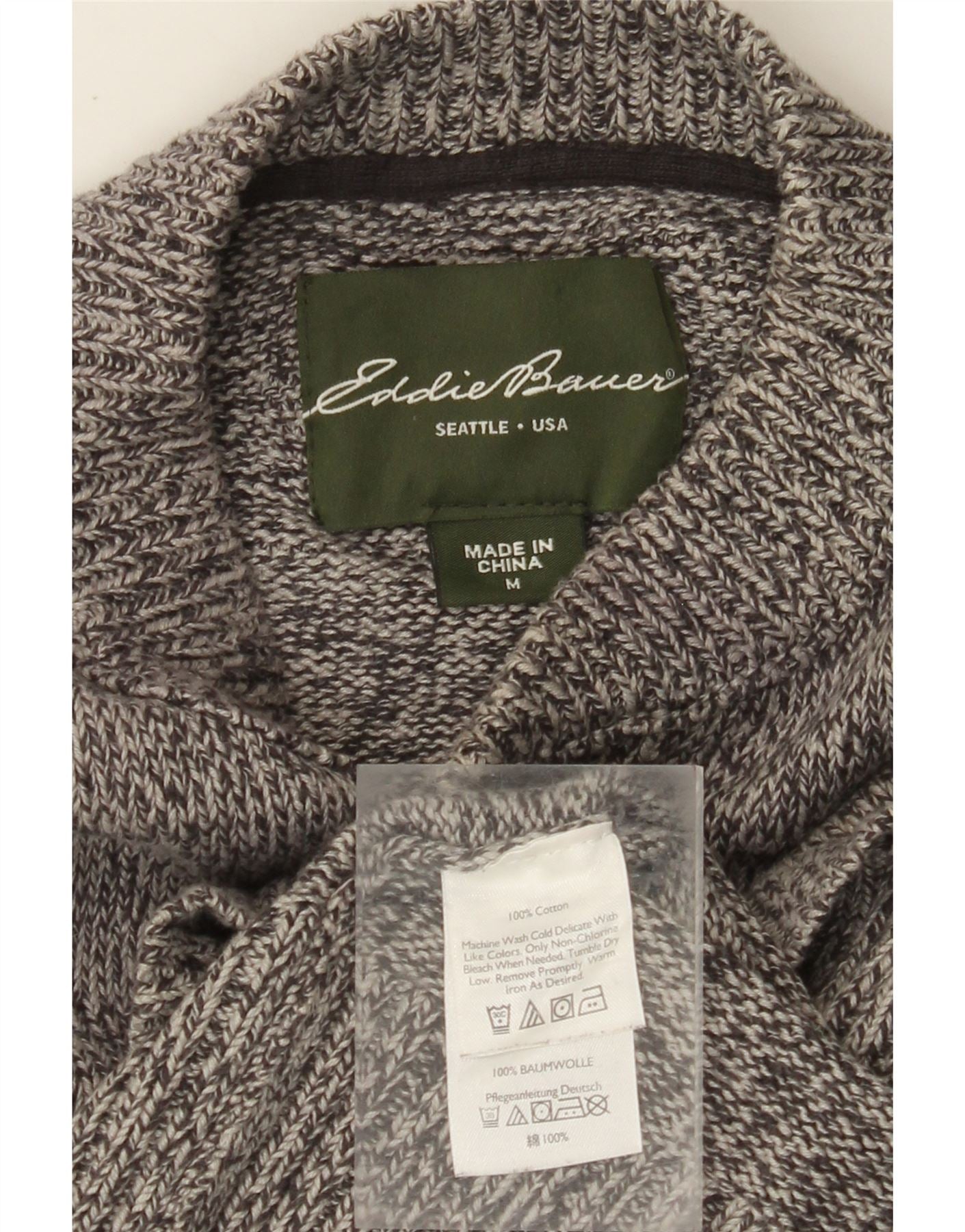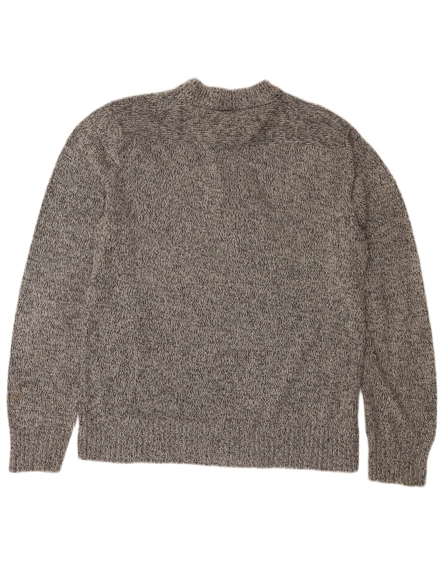 EDDIE BAUER Pulover pentru bărbați cu gât cu nasturi, bumbac cu pete, gri mediu