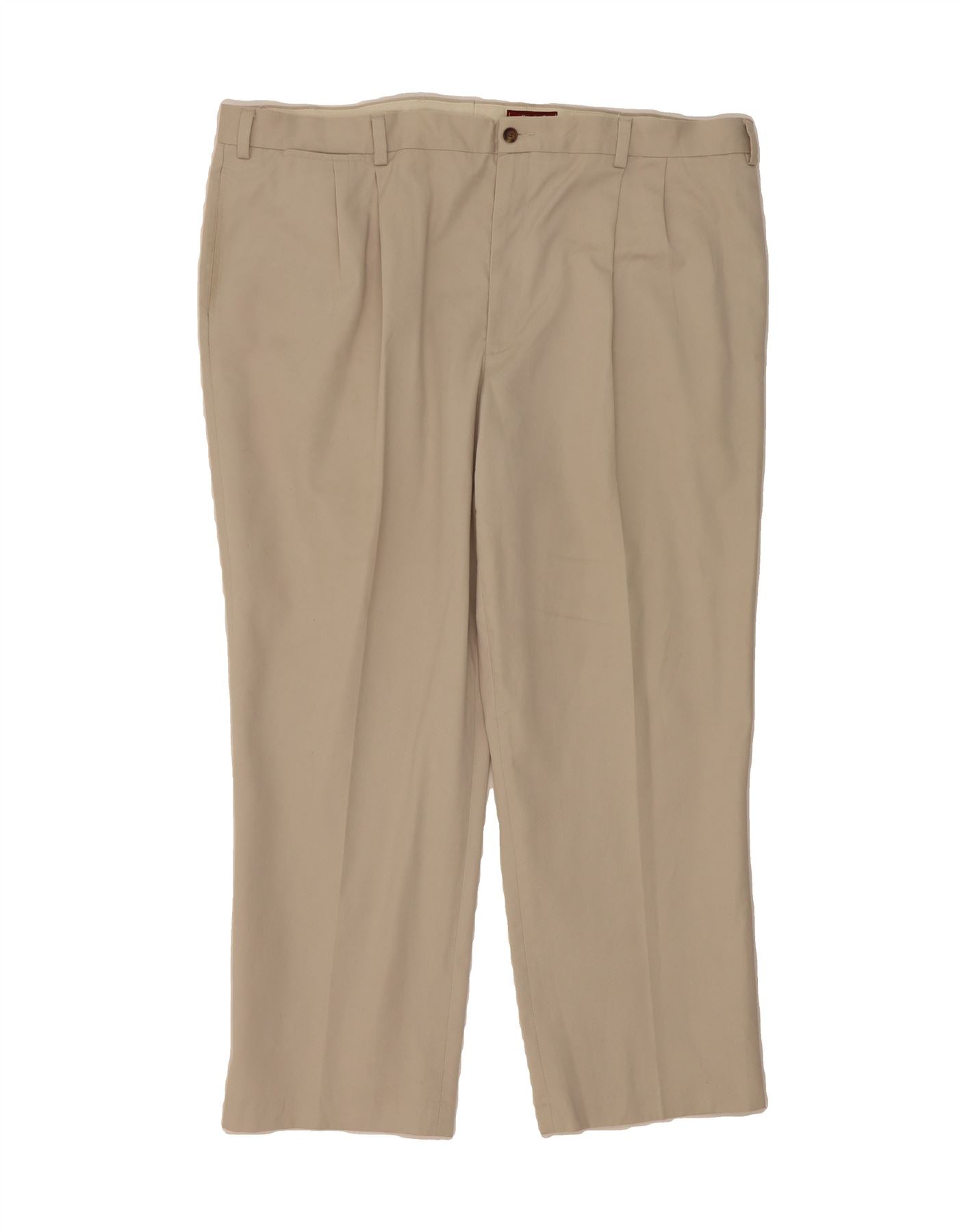 - AI Description: These pre-owned Eddie Bauer trousers offer classic style and comfort. Crafted from 100% woven cotton in a versatile beige hue, they feature a relaxed fit and elastic waist for ease of wear. The trousers include practical pockets and a button closure. Perfect for casual occasions, these trousers are in excellent condition and labelled size W46. Washing instructions can be found on the side label.