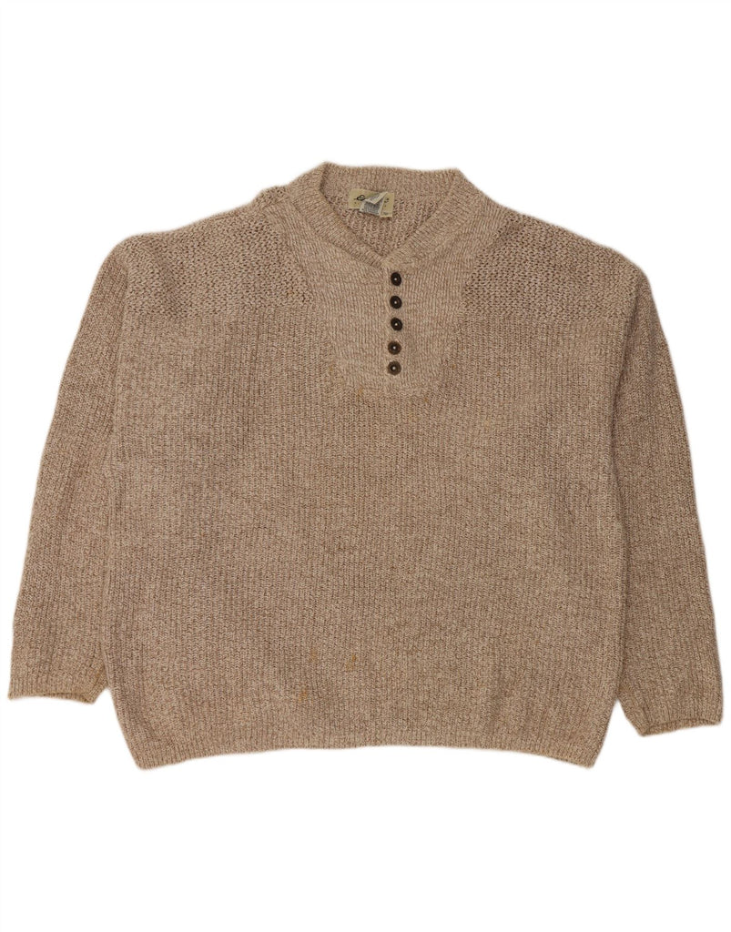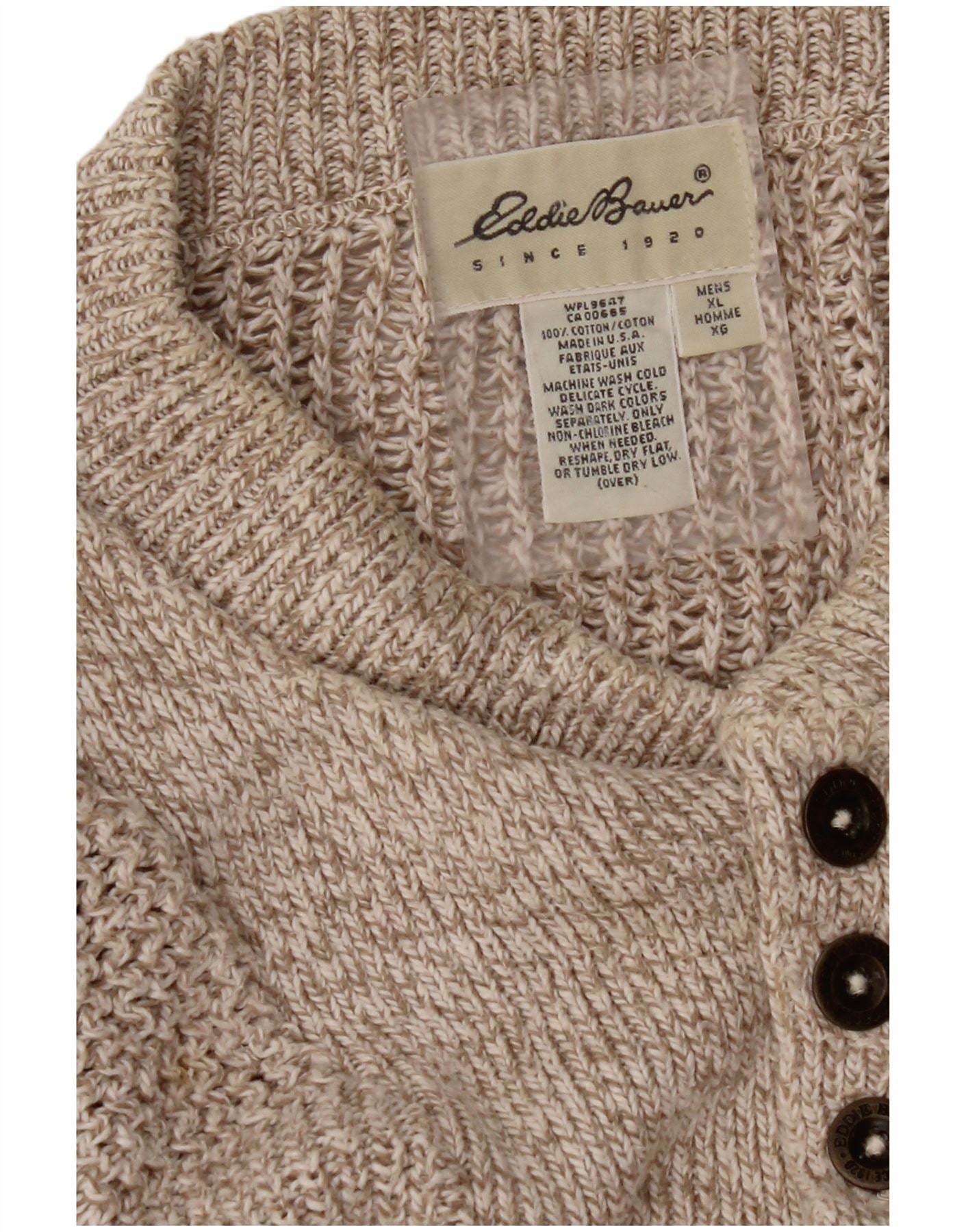 EDDIE BAUER Pulover supradimensionat pentru bărbați, cu gât cu nasturi, XL, bej, pete