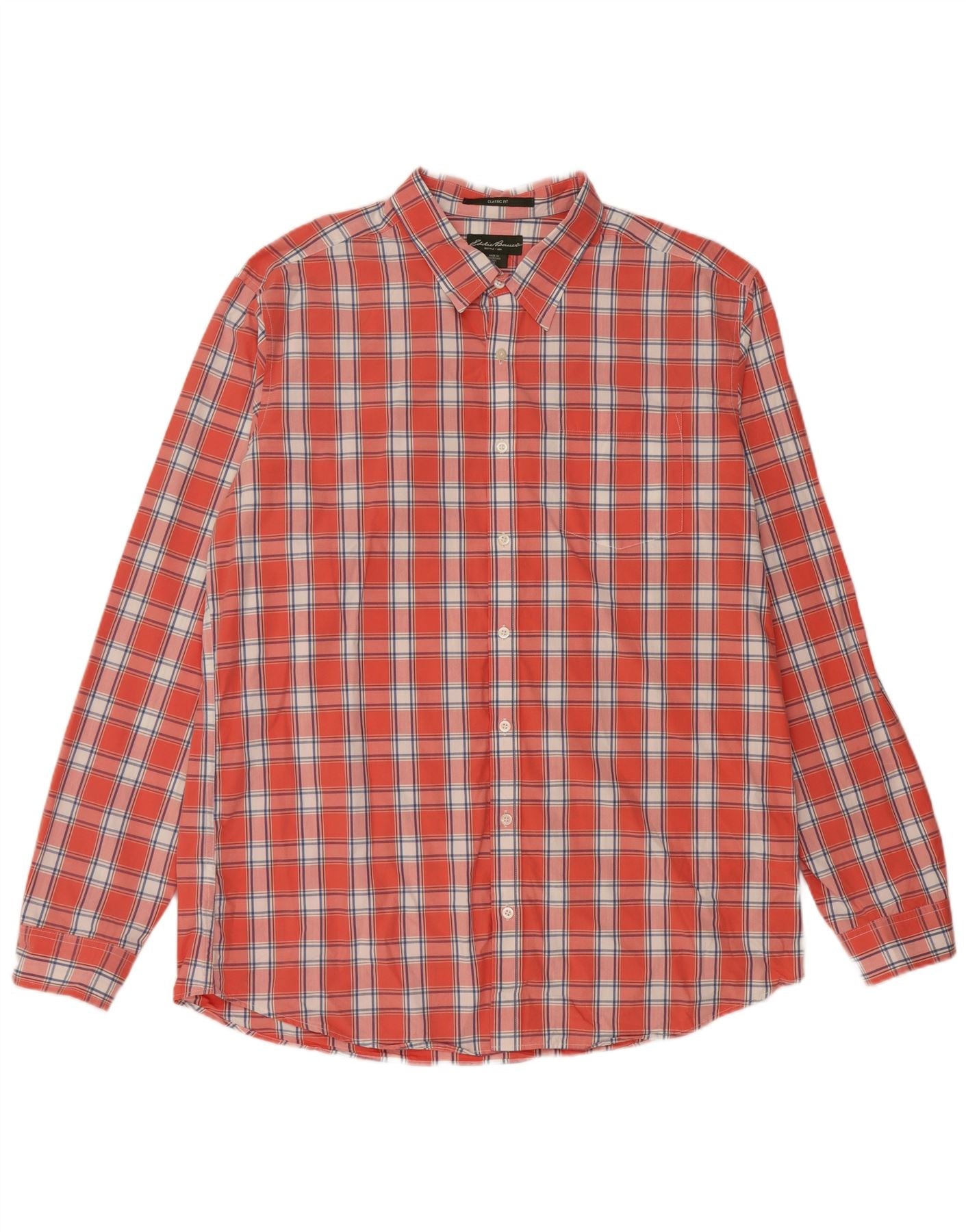 Cămașă pentru bărbați EDDIE BAUER Tall Classic Fit XL Orange Check Bumbac