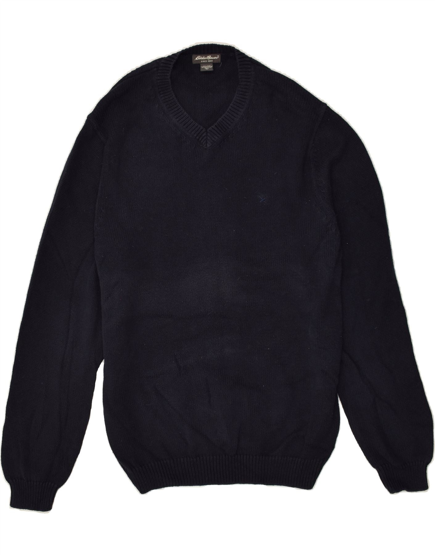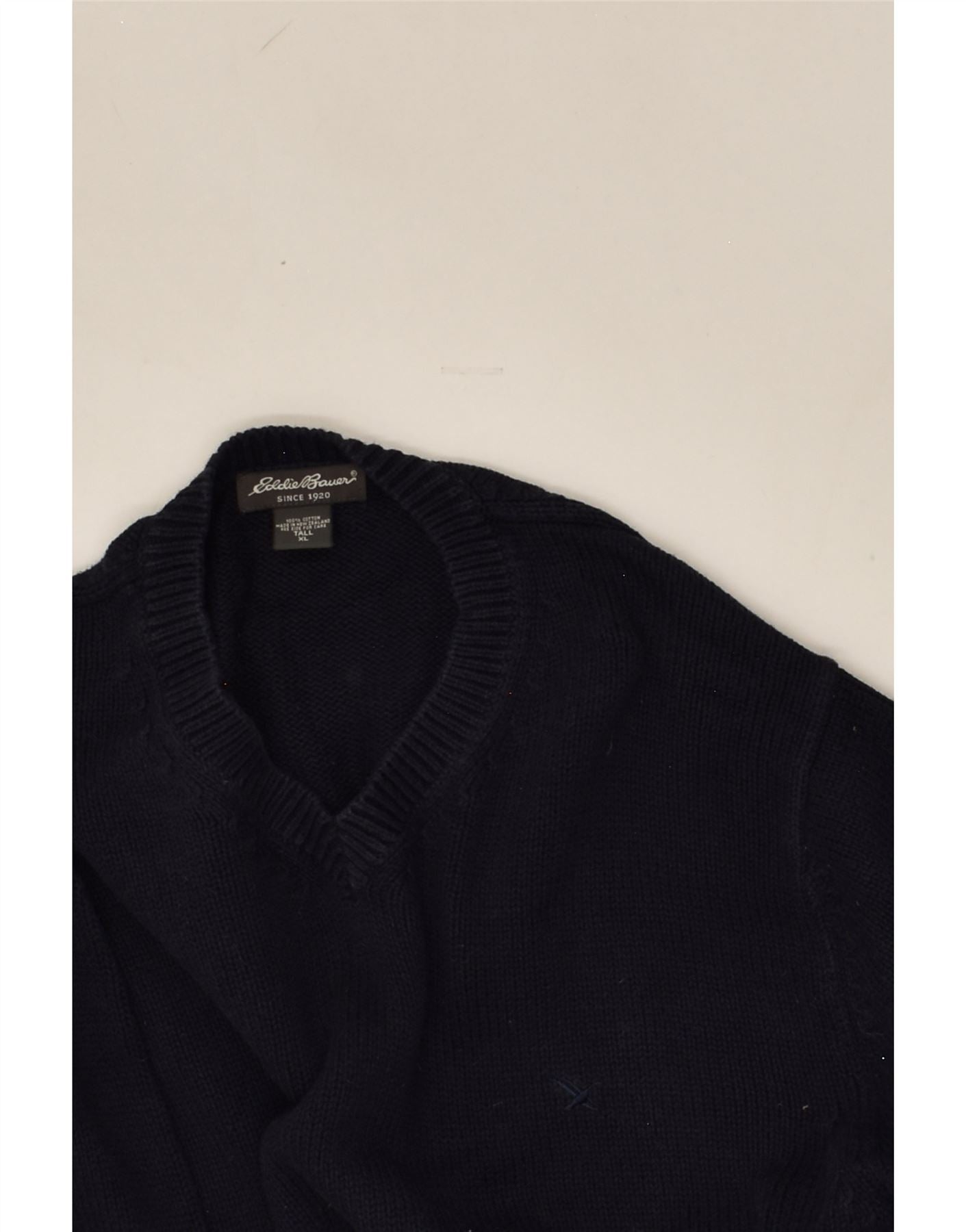 EDDIE BAUER Mens Tall V-Neck Jumper Sweater XL Navy Blue Cotton