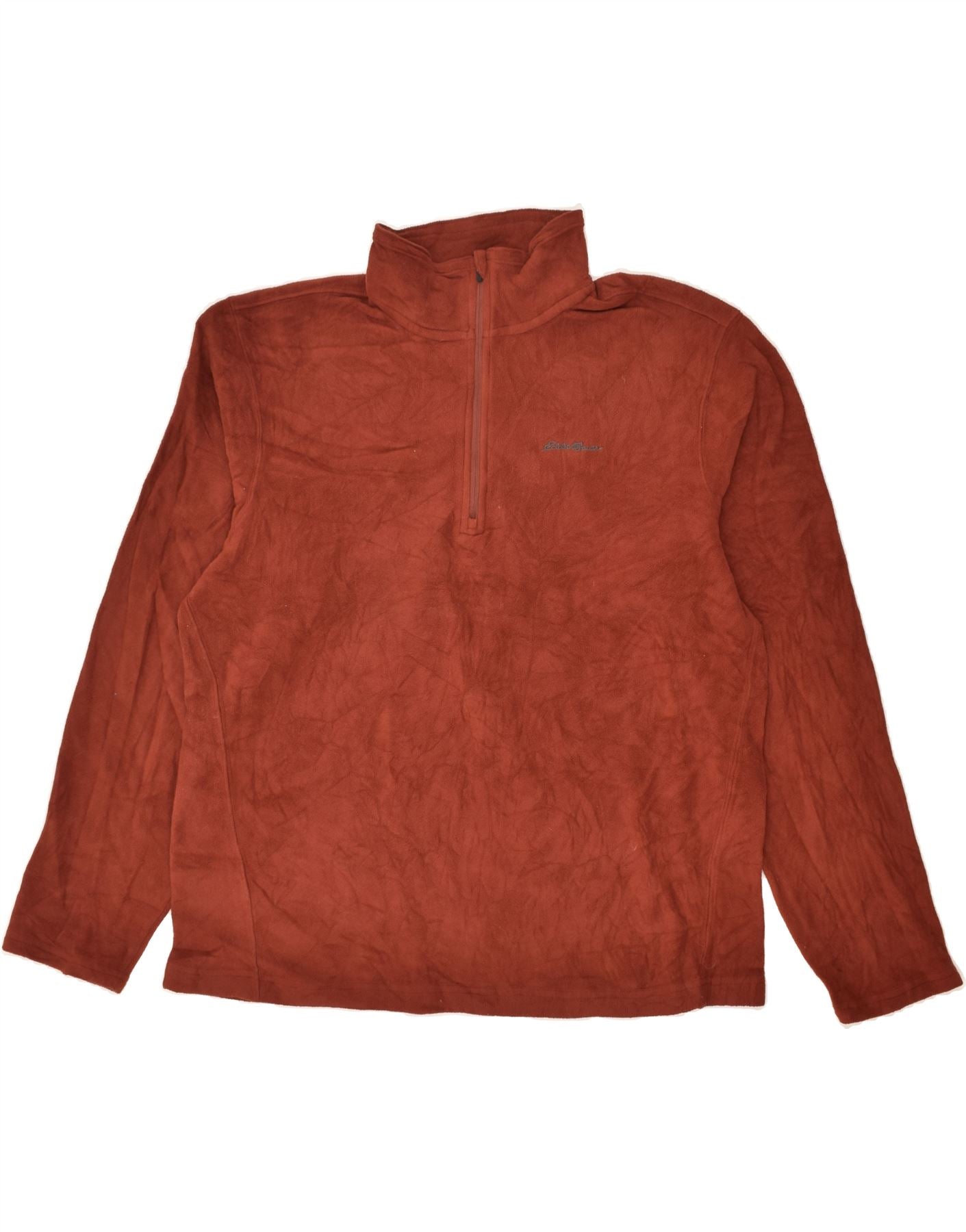 EDDIE BAUER Mens Zip Neck Fleece Jumper Large Maroon Polyester