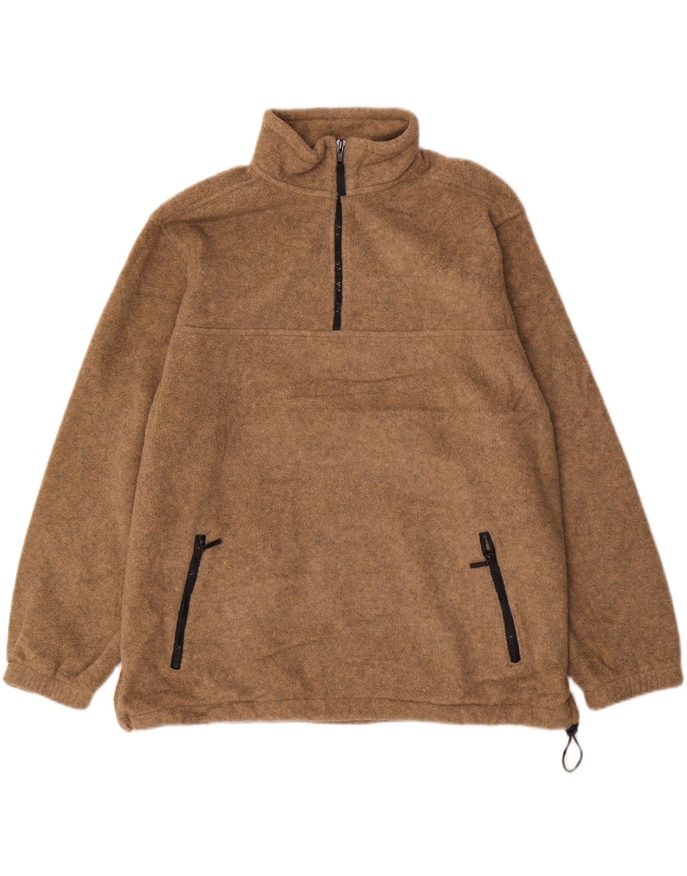EDDIE BAUER Pulover pentru bărbați, cu fermoar, lână, XL, maro, poliester
