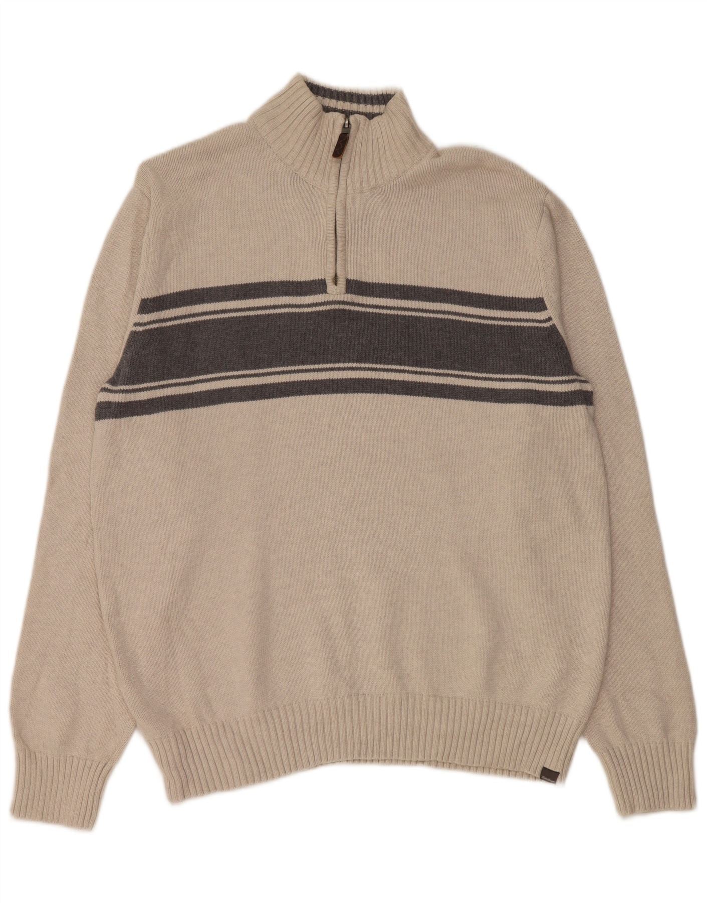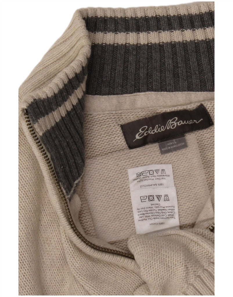 EDDIE BAUER Pulover pentru bărbați, cu fermoar, cu gât, bumbac mare, bej, bloc de culoare
