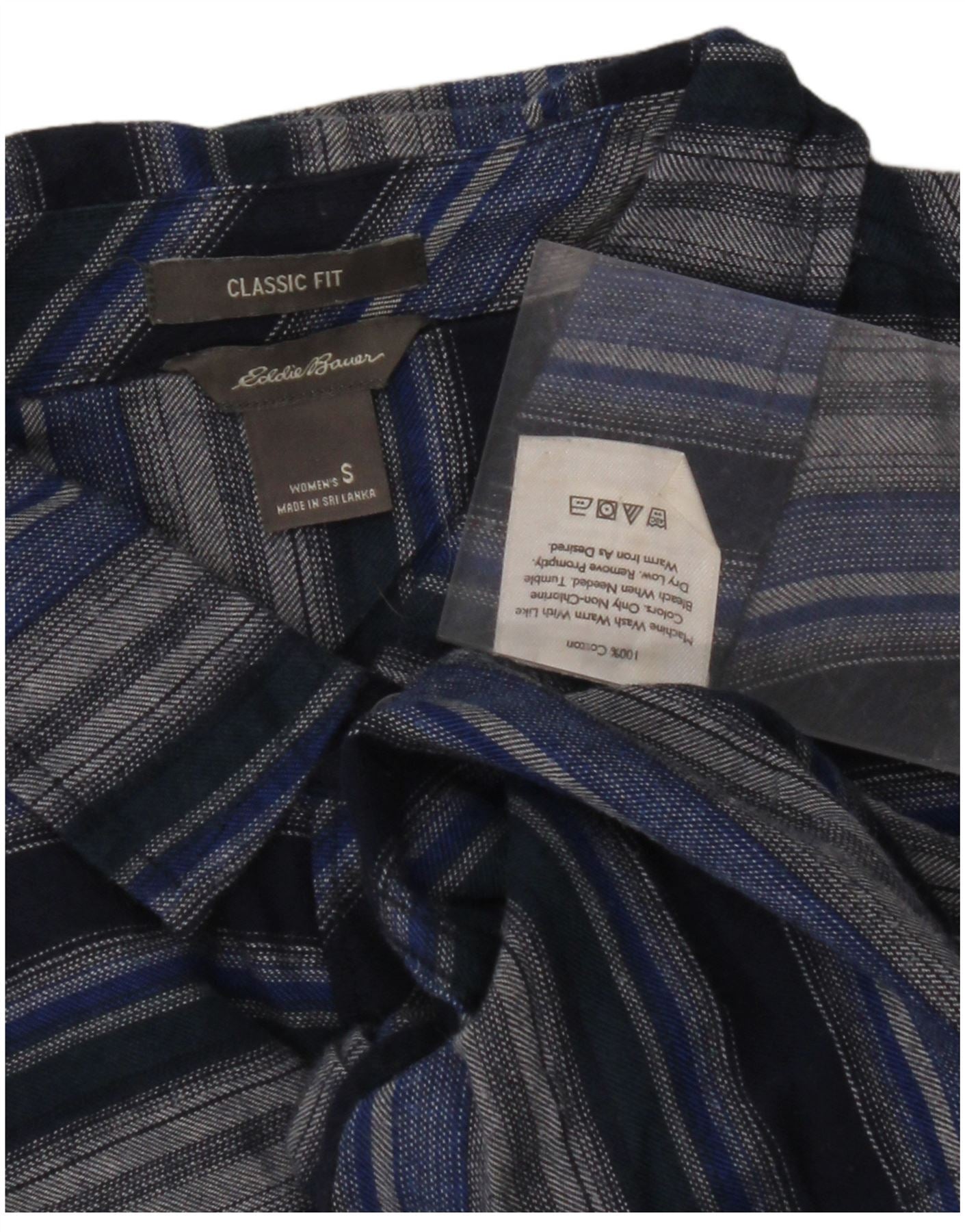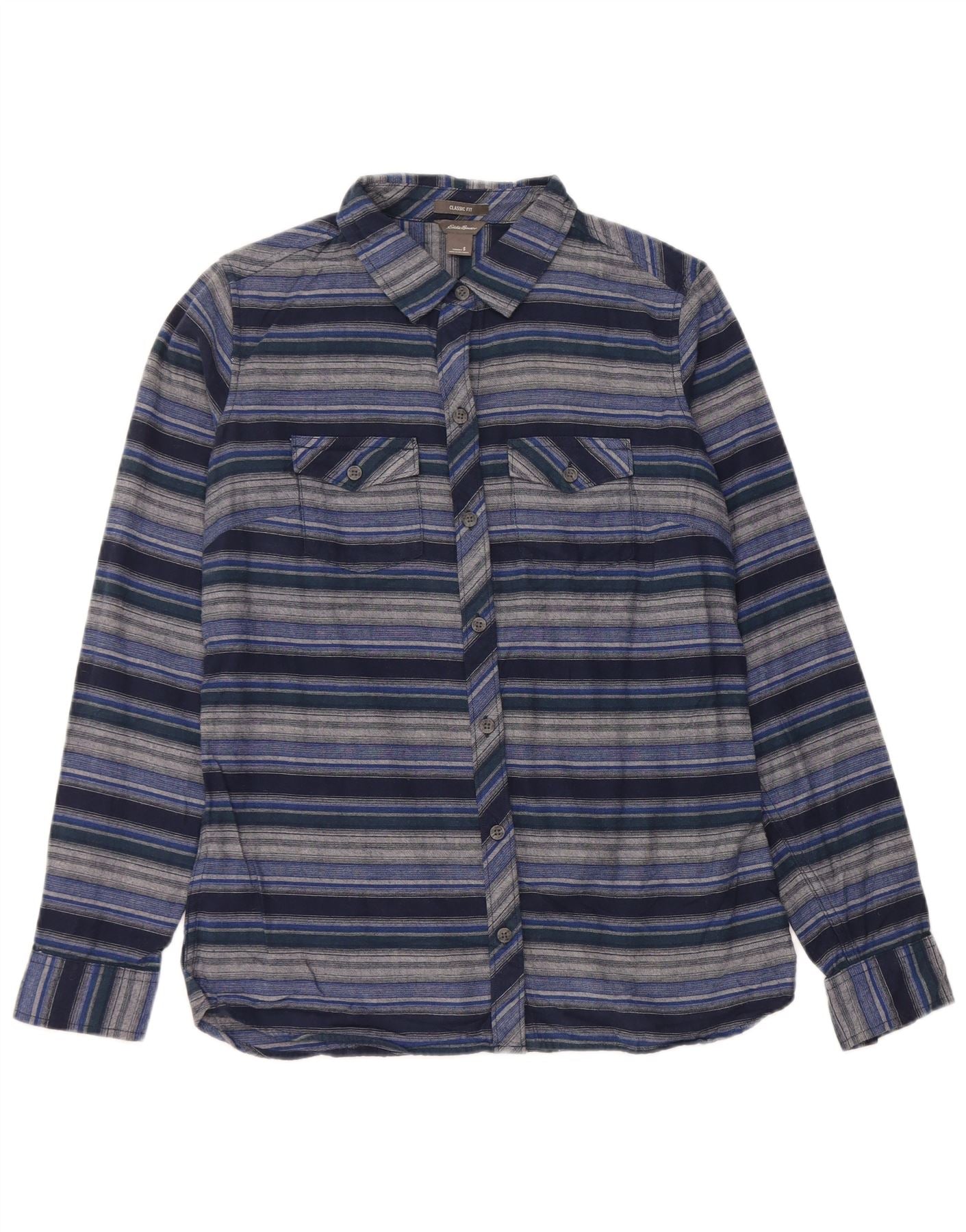 Cămașă de flanel pentru femei EDDIE BAUER, cu tăiere clasică, UK 10, cu dungi mici, bleumarin