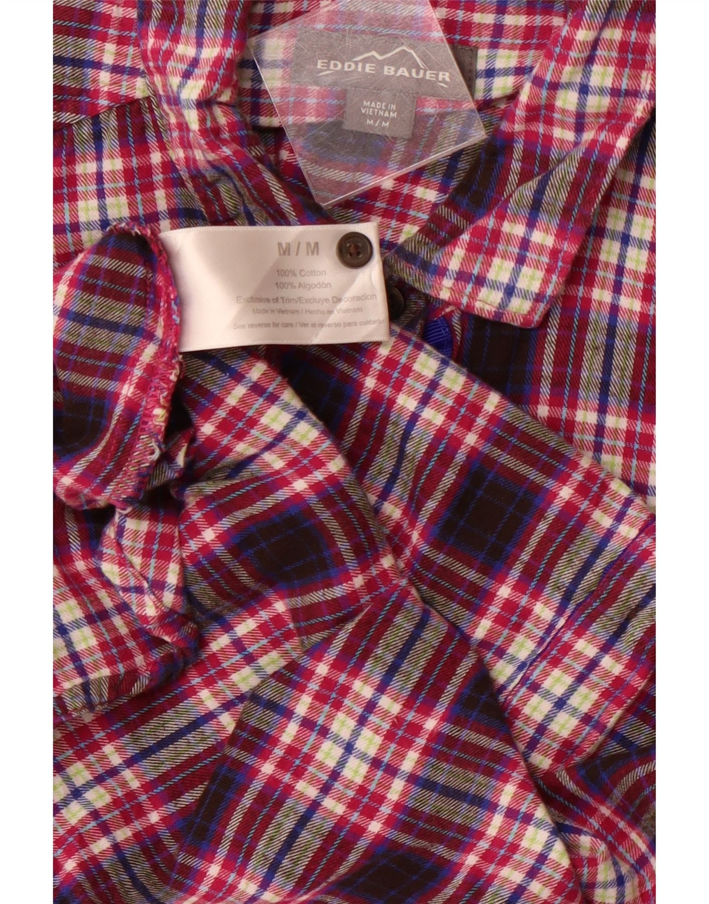 Cămașă de flanel pentru femei EDDIE BAUER UK 12, bumbac cu carouri mov mediu