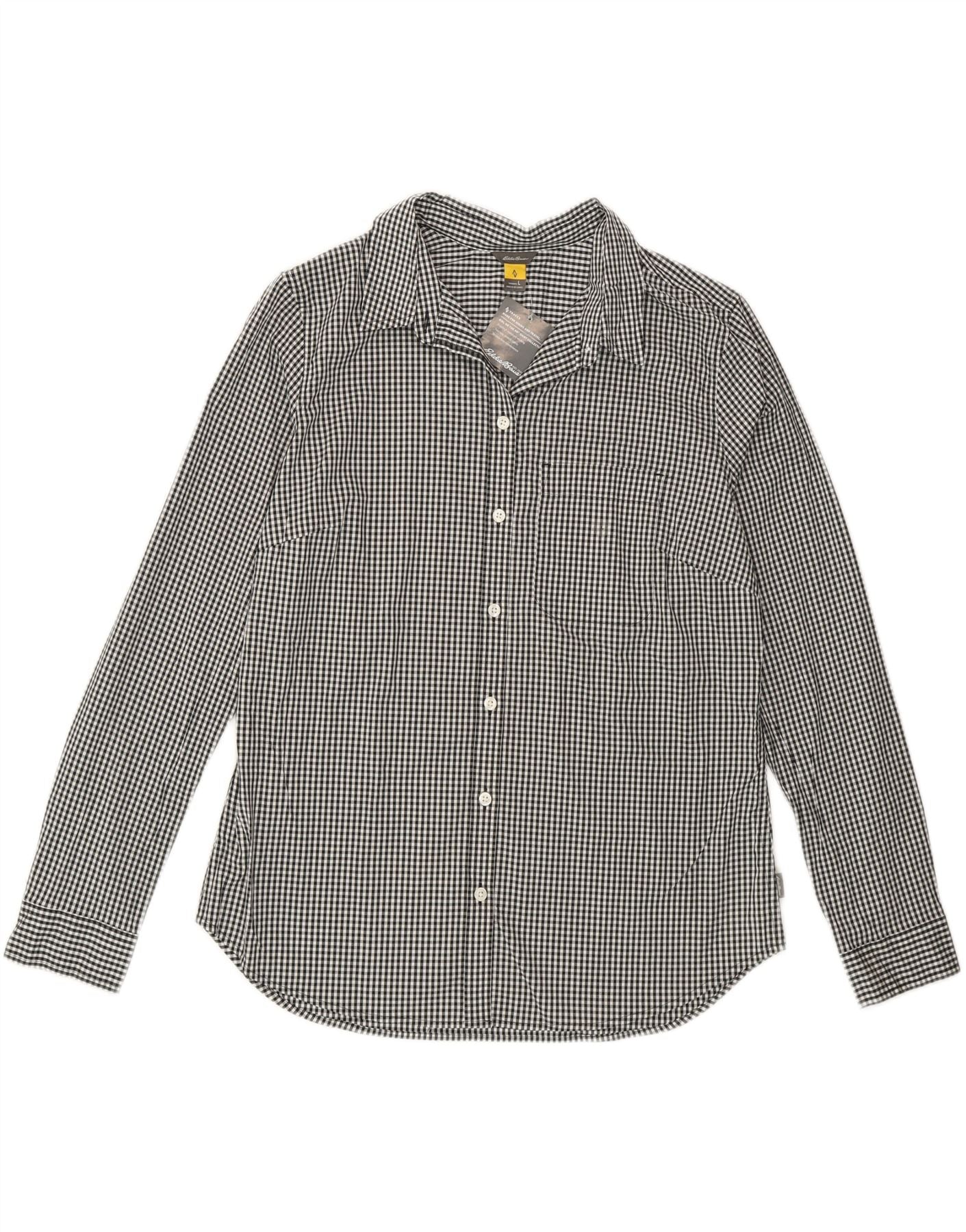 Cămașă pentru femei Eddie Bauer UK 16 mare, negru, bumbac vichy