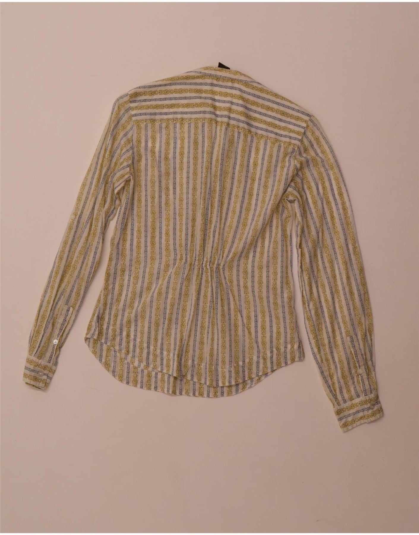 - Descriere AI: Această bluză de cămașă pentru femei Eddie Bauer este confecționată din țesătură 100% bumbac, oferind o senzație de ușurință. Are un model cu dungi multicolore, care combină tonuri de alb, galben și albastru. Decolteul cu guler duce la o închidere frontală cu nasturi. Mâneci lungi finisate cu manșete cu nasturi. Potrivirea sa regulată asigură o purtare confortabilă. Designul abstract în dungi adaugă interes vizual.